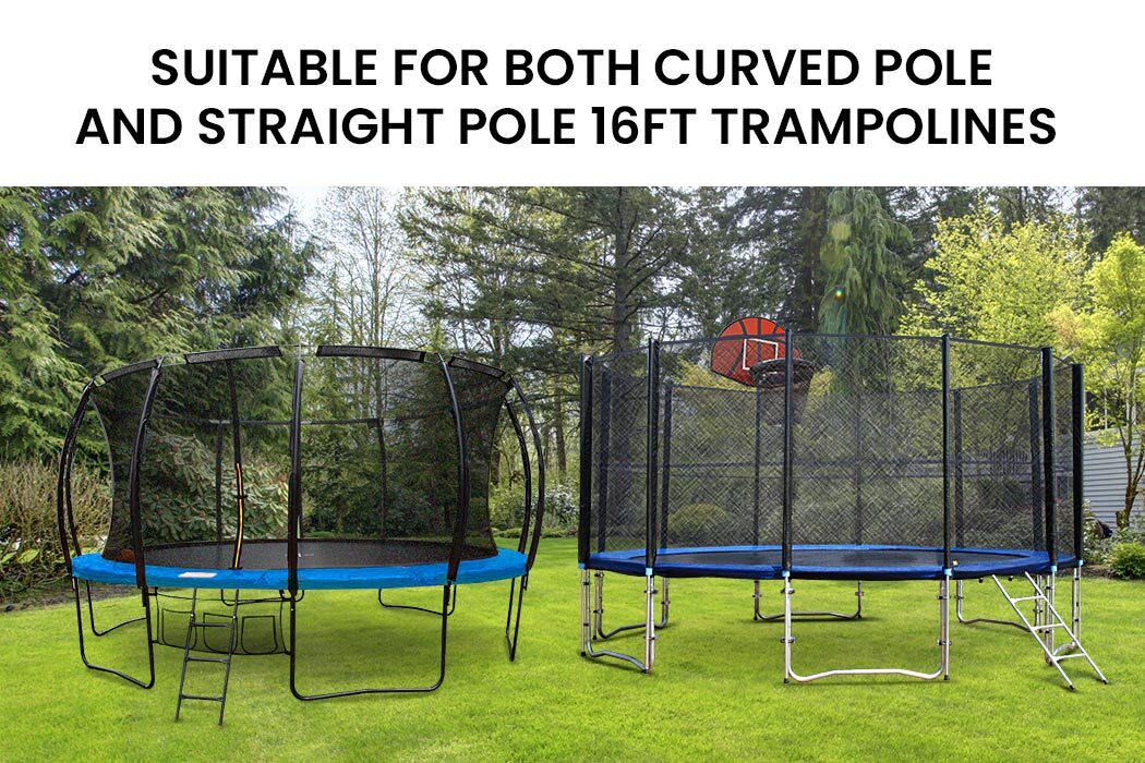 This universal design replacement padding is easily secured with elastic ties and fits over the springs of both curved pole and straight pole 16FT spring models of UP-SHOT and other brand trampolines. This high-quality edge-to-edge pad is made from waterproof UV resistant PVC material and high-density anti-microbial vinyl to provide protection from the elements. The thick and comfortable encased EVA foam allows for countless hours of comfortable cushioned fun!