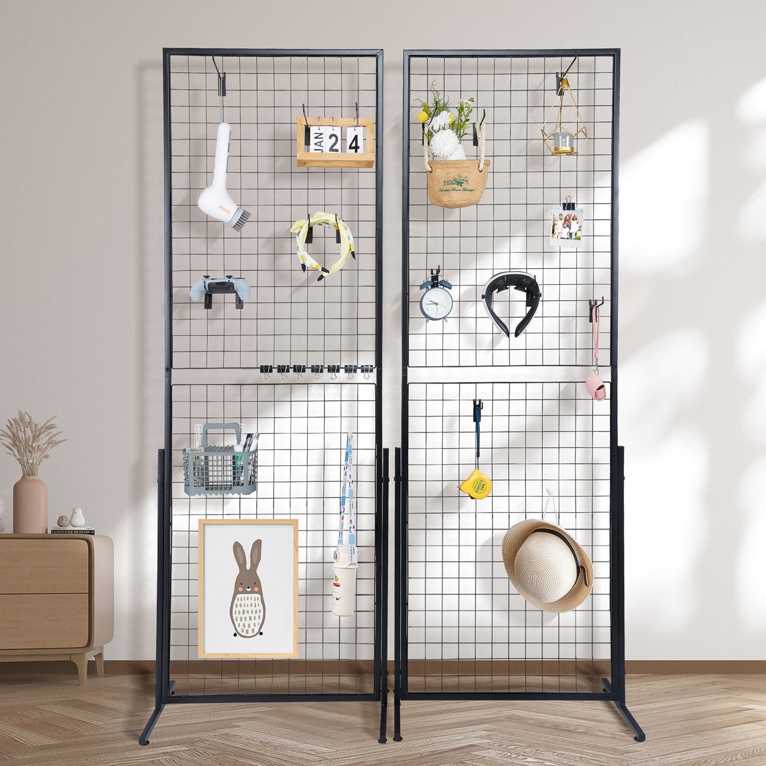 Our set of two 24.29x67.56 inch gridwall panel towers provide a large hanging area for various occasions, including home decoration and commercial displays. The unique folding design allows for effortless setup and compact storage, making it perfect for environments that require frequent display changes.