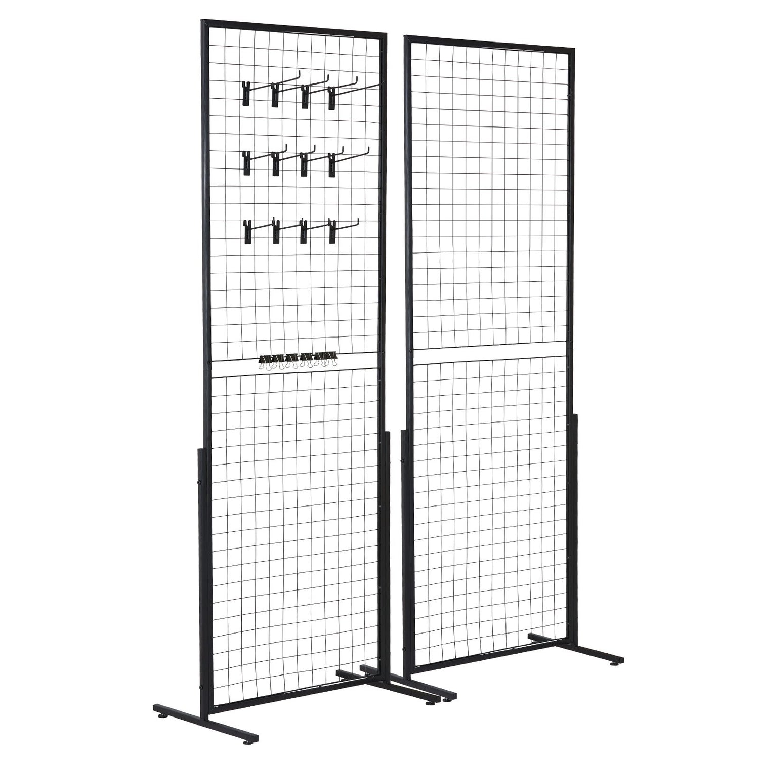 VEVOR 2' x 5.6' Grid Wall Panels Tower, 2 Packs Wire Gridwall Display Racks with T-Base Floorstanding, Double Side Gridwall Panels for Art Craft Shows, Retail Display with Extra Clips and Hooks
