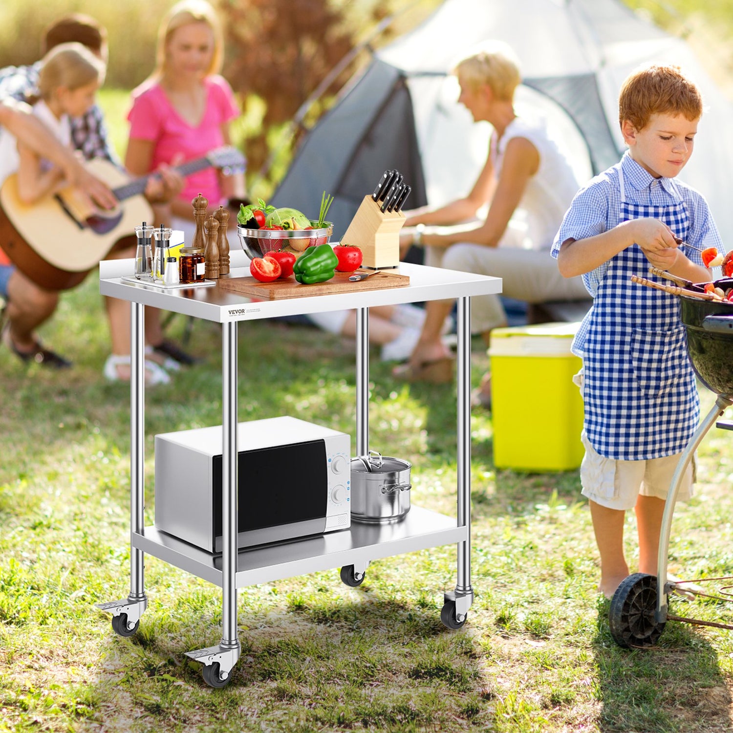 VEVOR 24 x 36 x 40 Inch Stainless Steel Work Table, Commercial Food Prep Worktable with Casters, Heavy Duty Prep Worktable, Metal Work Table with Adjustable Height for Restaurant, Home and Hotel