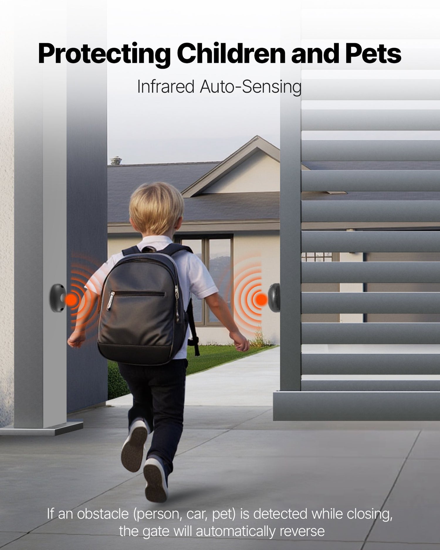 With a 280W pure copper motor and 1400r/min speed, this automatic gate opener supports up to 1799 lbs / 816 kg gates (up to 82.02 ft / 25 m wide), ensuring smooth, reliable operation for residential, farm, or commercial use.