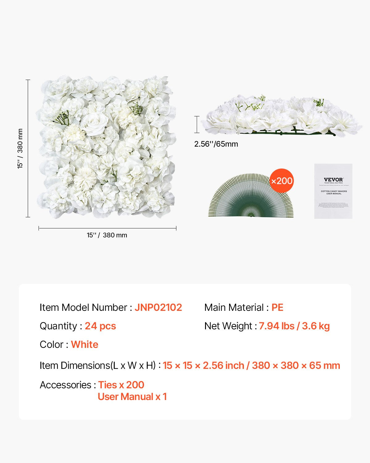 VEVOR 3D Flower Wall Panel, 24 PCS 15 x 15 inch, Artificial Floral Wall Background Mesh Backing Mat,Seamless Design&Easy Installation for Wedding Valentines Day Home Baby Party Backdrop Decor,White is backordered and will ship as soon as it is back in stock.