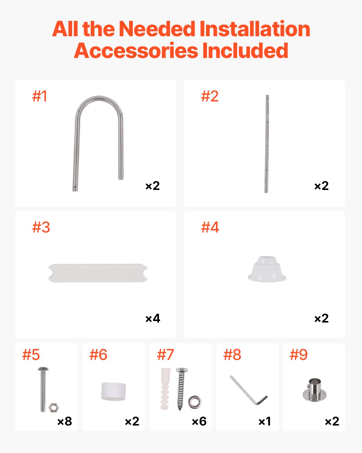 This pool ladder features 4 steps and double handrails on both sides. The steps are designed with textured patterns to ensure secure entry and exit, even underwater, helping prevent slips and accidents