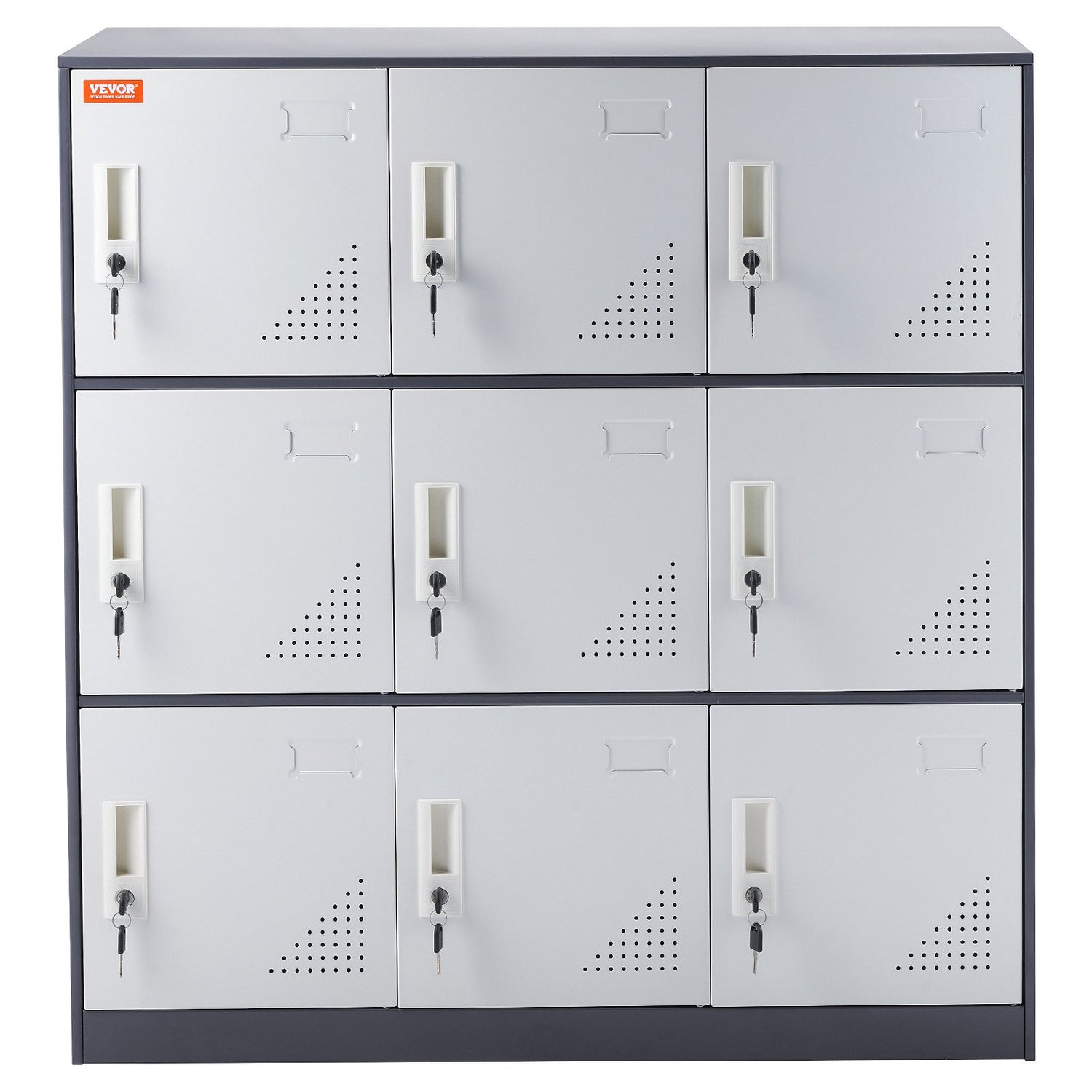 Maximize your storage space and stay organized with this 9-compartment metal cabinet! Measuring 35.4'' x 17.7'' x 37'', each compartment provides ample room for your items. Make the most of your storage with this partitioned solution.