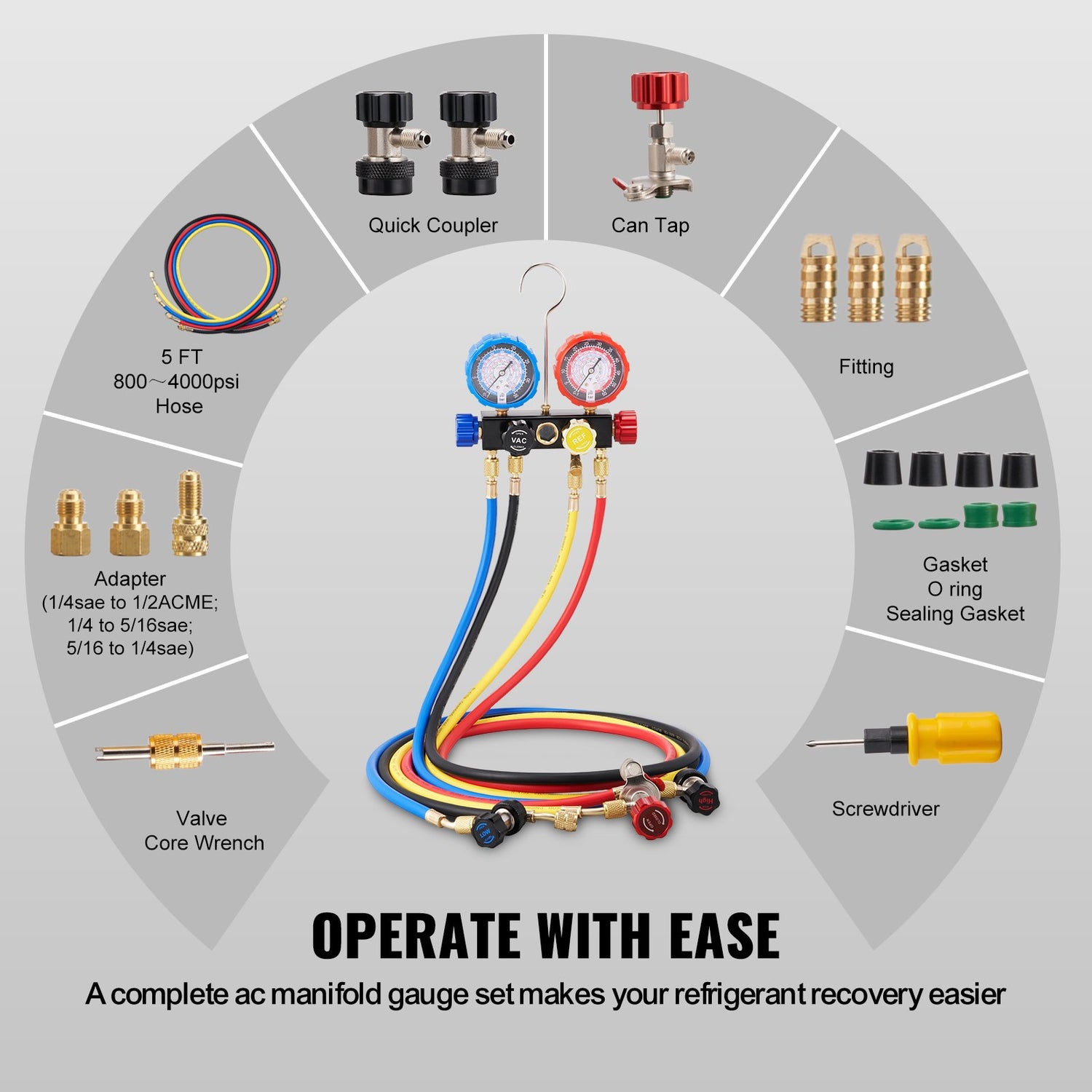 VEVOR AC Manifold Gauge Set 4-Way Fit R134A R22 R12 R502 Refrigeration Charging