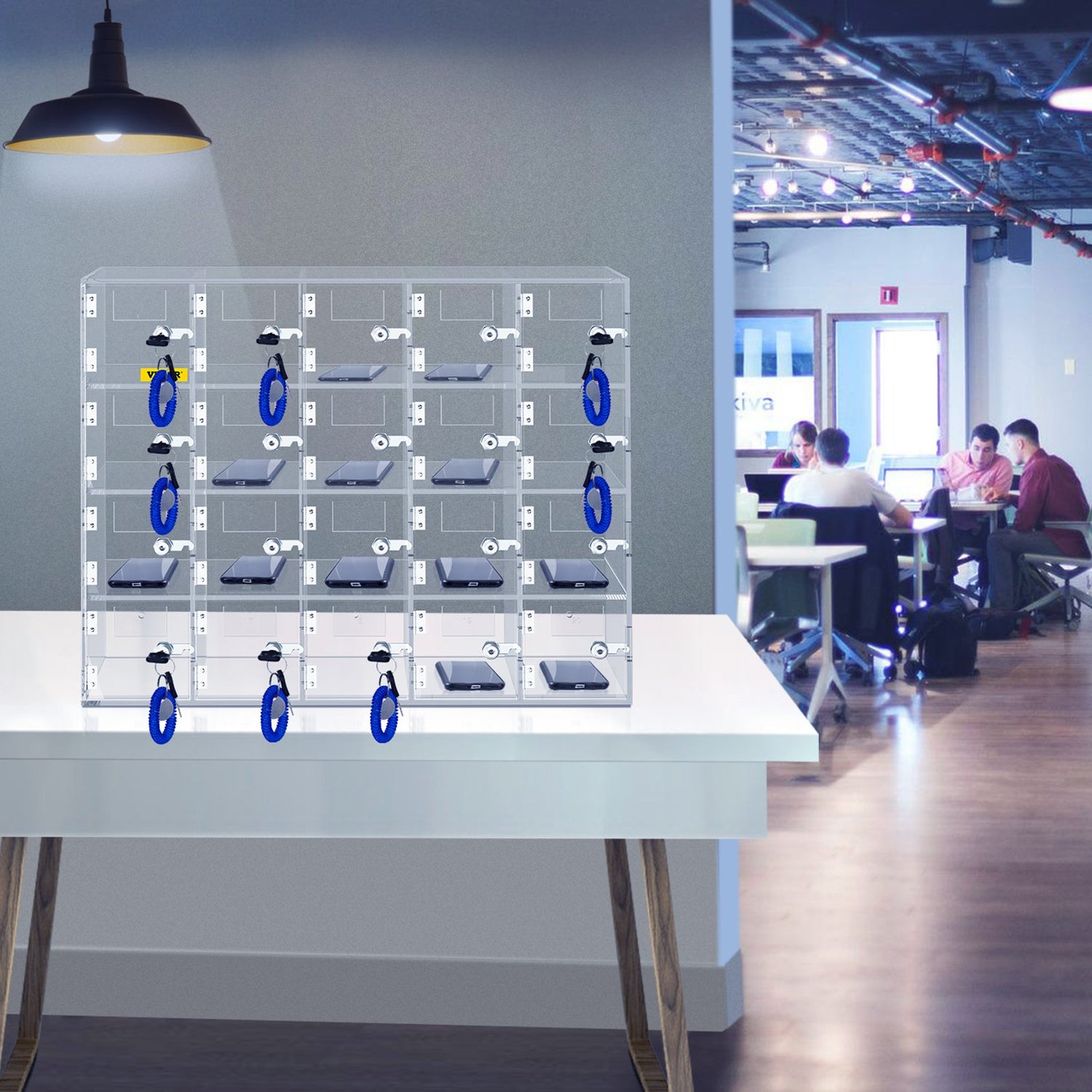Use our acrylic cell phone locker to store phones and wallets. Do not allow phones to cause disturbances during classes, meetings, or sports anymore. Perfect for use in class, gyms, meeting rooms, factories, etc. Get your team focused and create a productive environment.