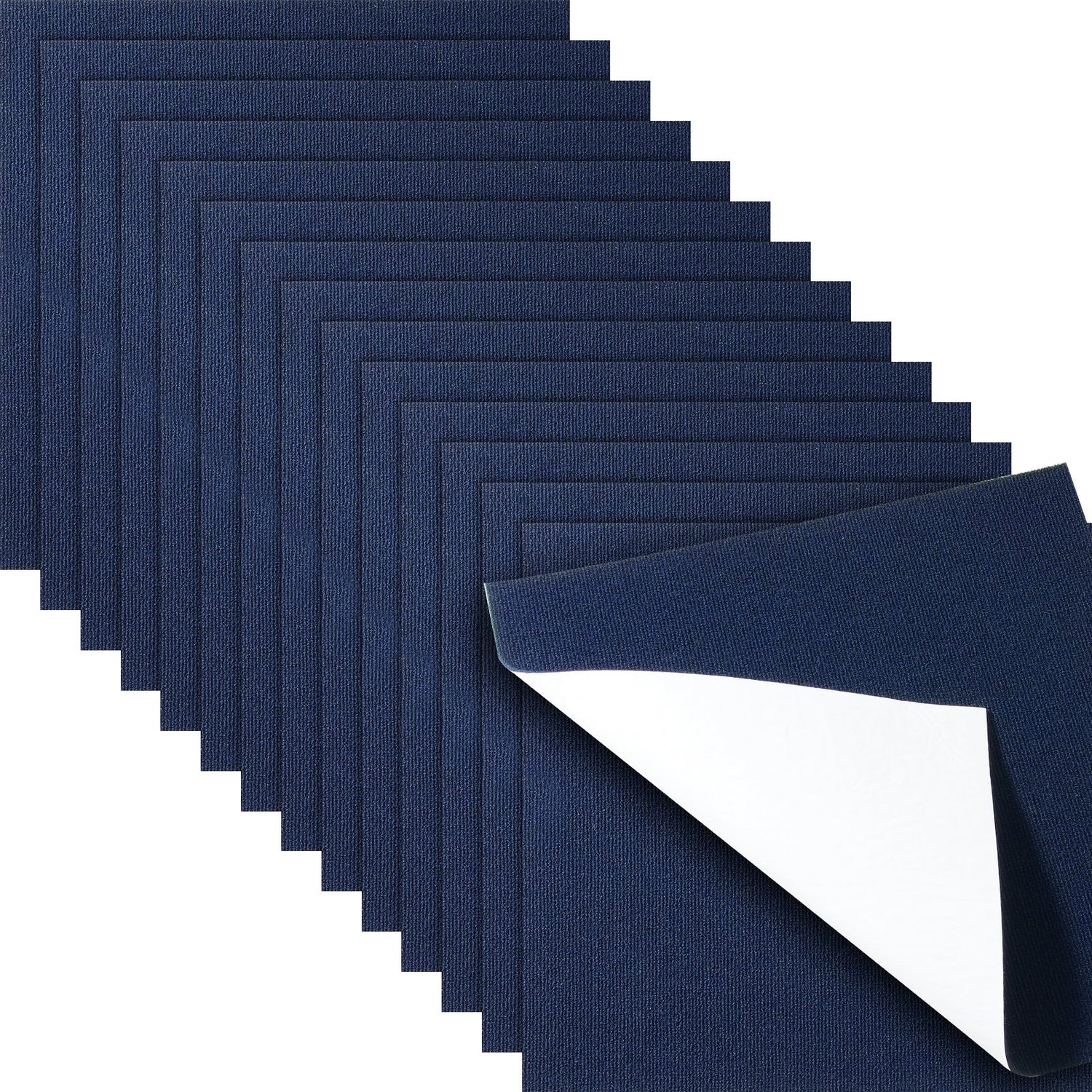 VEVOR Carpet Tiles Peel and Stick, Squares Self Adhesive Carpet Floor Tile, Soft Padded Carpet Tiles, Easy Install DIY for Bedroom Living Room Indoor Outdoor (15Tiles, Dark Blue)