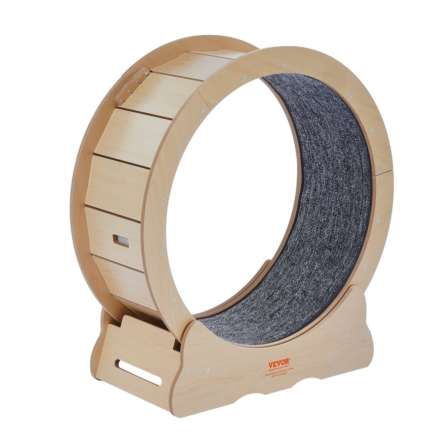 With an external diameter of 29.5 in/750 mm and an internal diameter of 25.6 in/650 mm, this cat wheel accommodates cats of all sizes, supporting feline friends up to 8 lbs. It allows your cats to stretch and roam freely, enabling them to release their energy to the fullest.