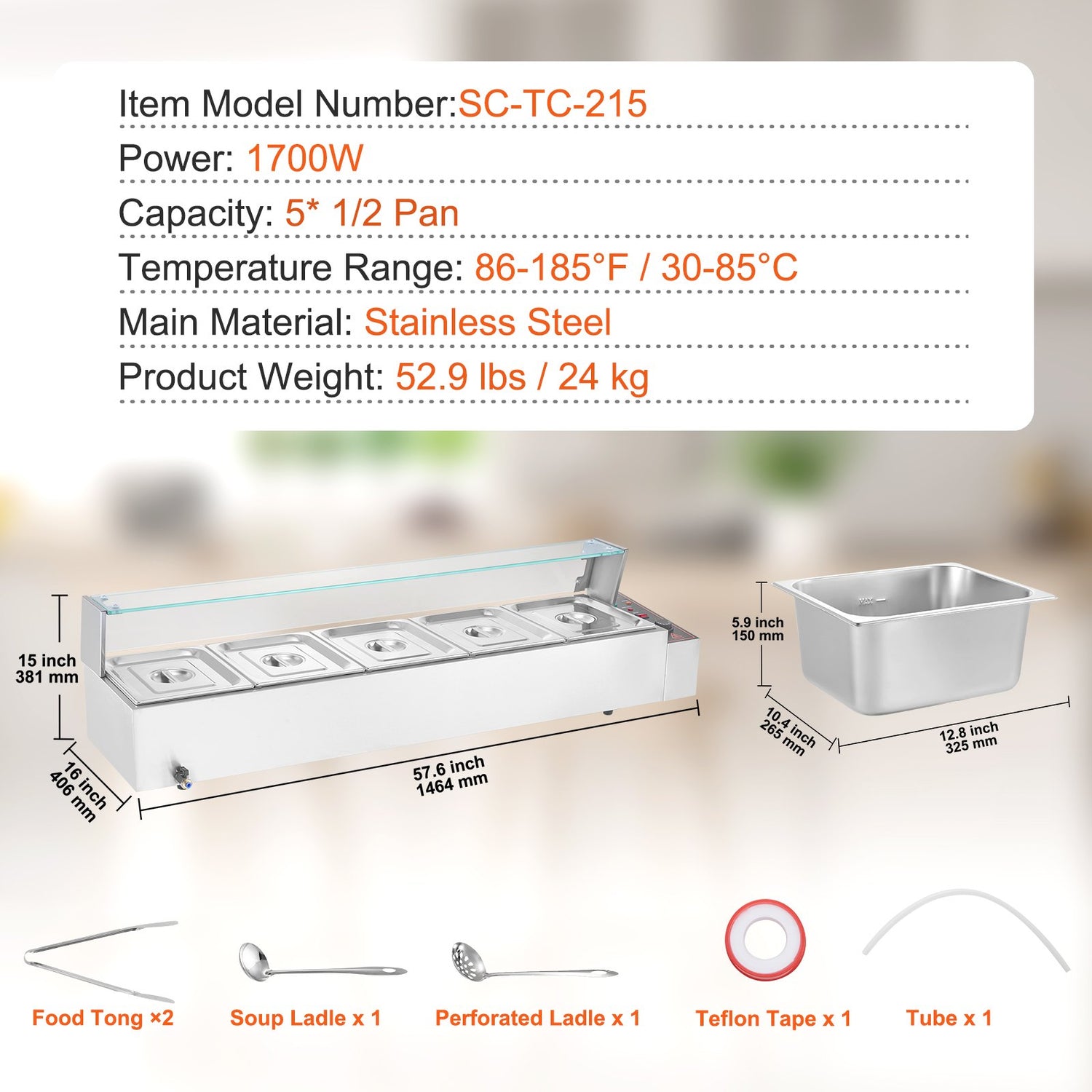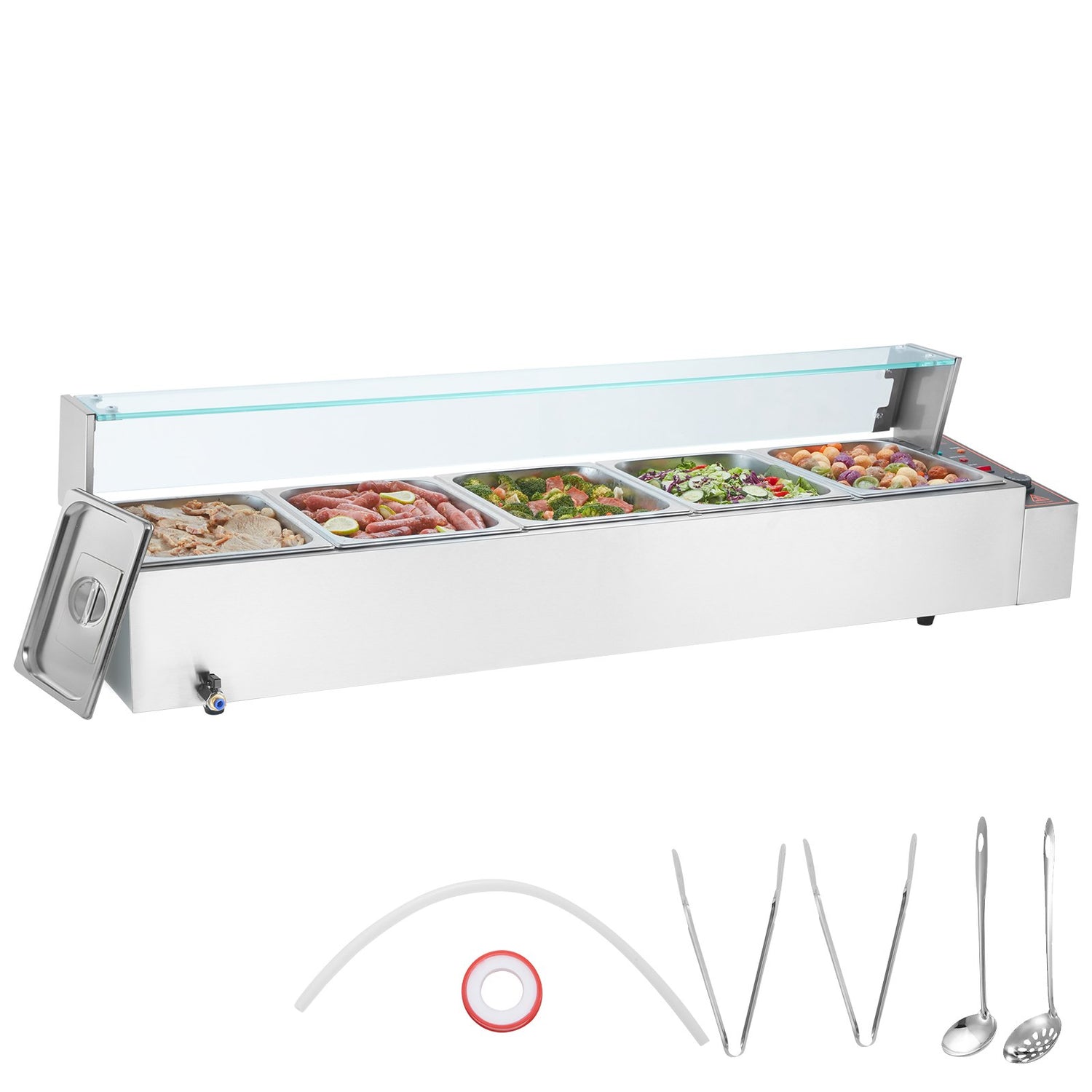 VEVOR Commercial Electric Food Warmer Countertop Buffet 5*8Qt with Glass Shield