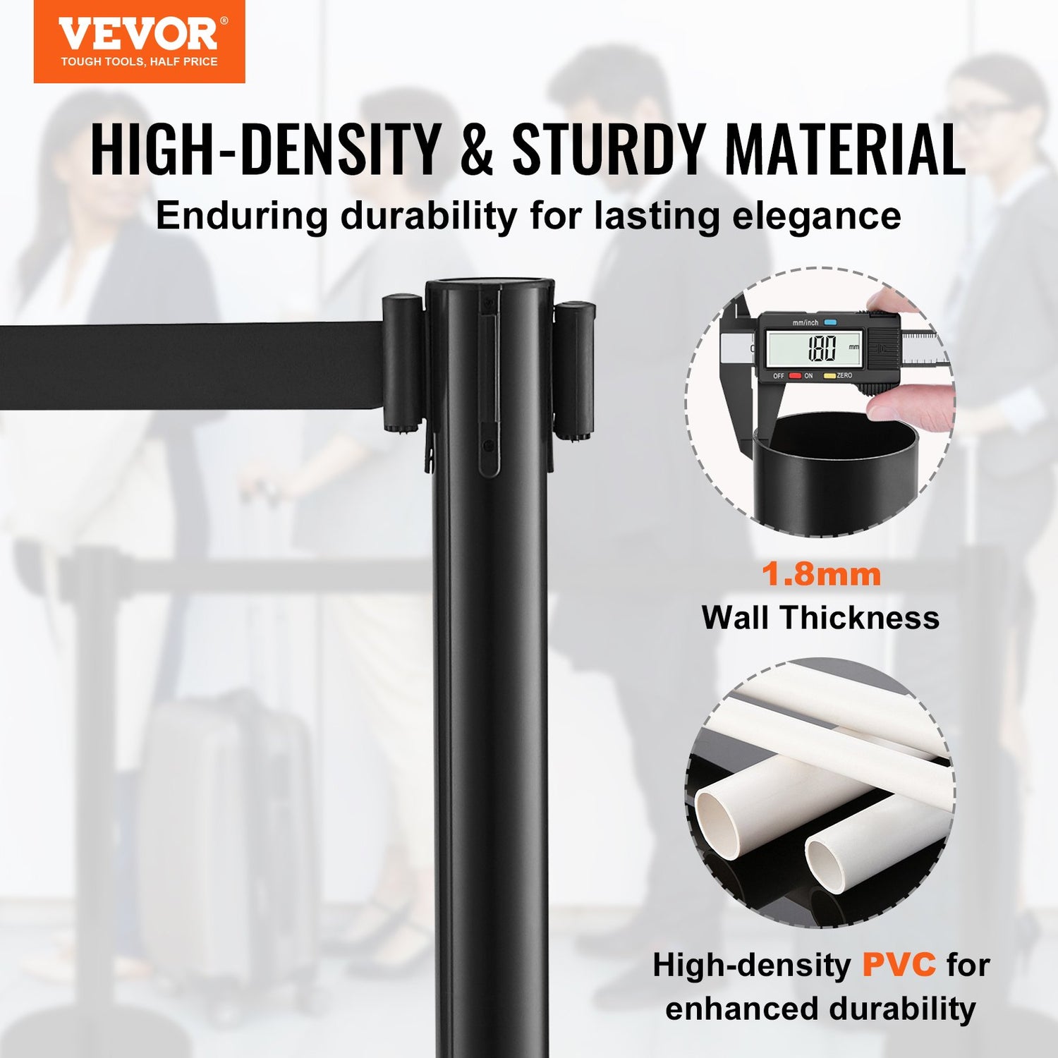 VEVOR crowd control stanchions- Your top choice for effective space management! Crafted with high-quality PVC posts (1.8mm wall thickness) and sturdy plastic bases, it not only ensures reliable crowd and queue control but also stands up to extended use.