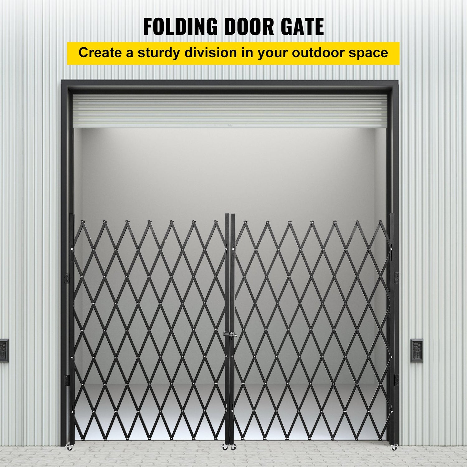 The double folding gate has a retractable door width structure. Collapsed Size(HxW): 61 x 8.2 in/5.1 x 0.7 ft, Expanded Size(HxW): 61 x 122 in/5.1 x 10.2 ft. The standard size is suitable for use as safety doors, barricade gates seeking protection, and defend.