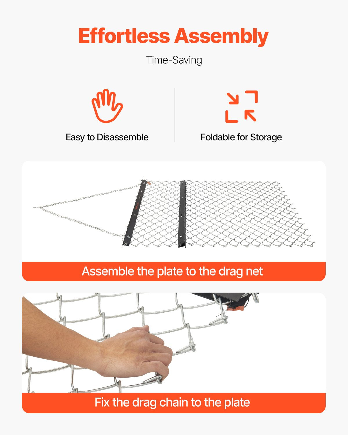 VEVOR Drag Harrow 4 x 5 ft Chain Harrow Lawn Rake ATV UTV Tractor Attachments