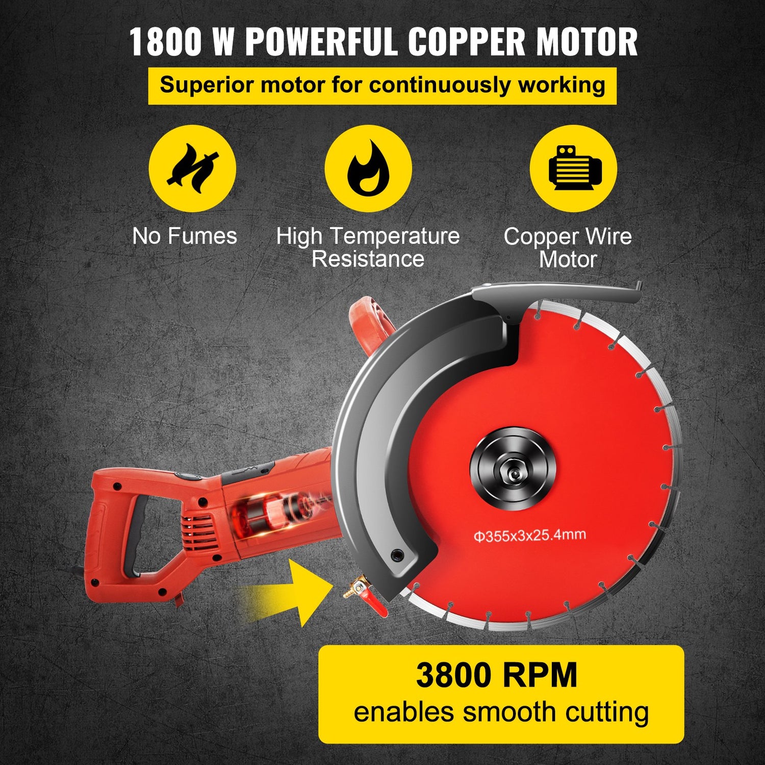 VEVOR Electric Concrete Saw, 14" Concrete Cutter, 1800W Concrete Saw, Electric Circular Saw with 14" Blade and Tools, Masonry Saw for Granite, Brick, Porcelain, Reinforced Concrete and Other Materials