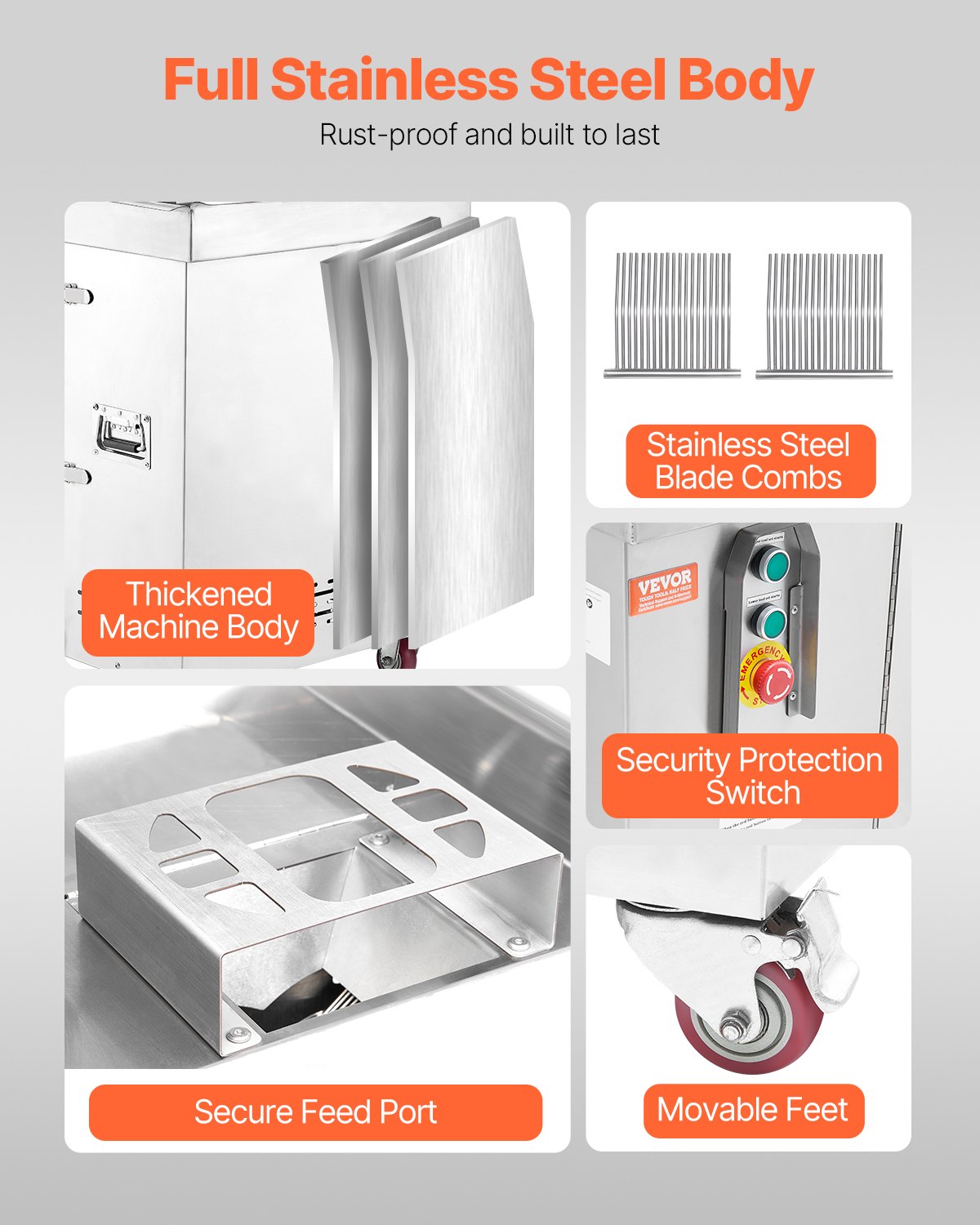 Crafted with high-quality stainless steel, this meat cutting machine resists rust and lasts longer. The anti-slip rubber base helps keep it steady, making it a go-to tool for small businesses, farmer's markets, restaurants, home kitchens, and more.