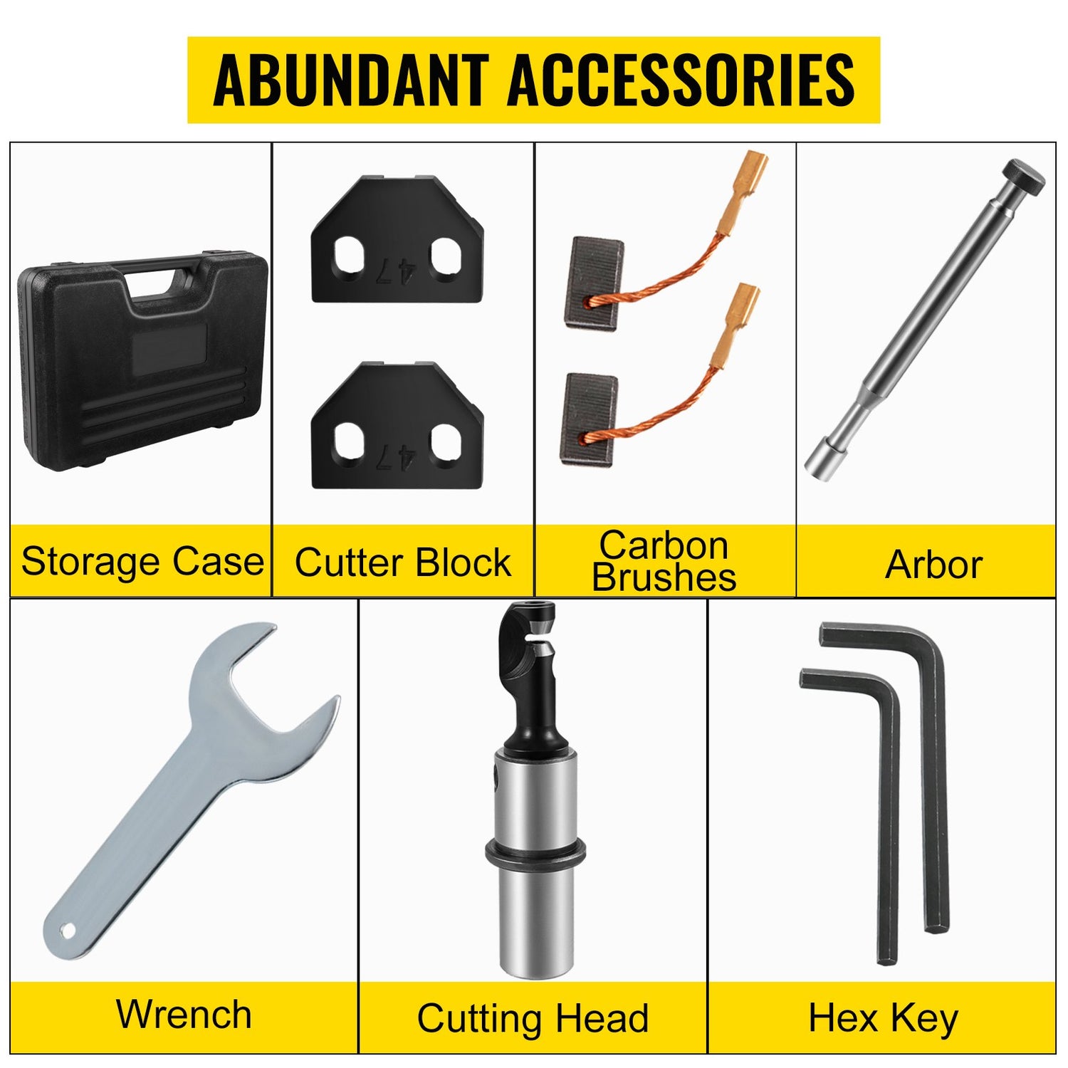 Our nibbler tool is equipped with a pair of replacement tool blocks, a wrench, a set of hook-type tools, two hexagon spanners, two carbon brushes, and comes with a toolbox for easy carrying.