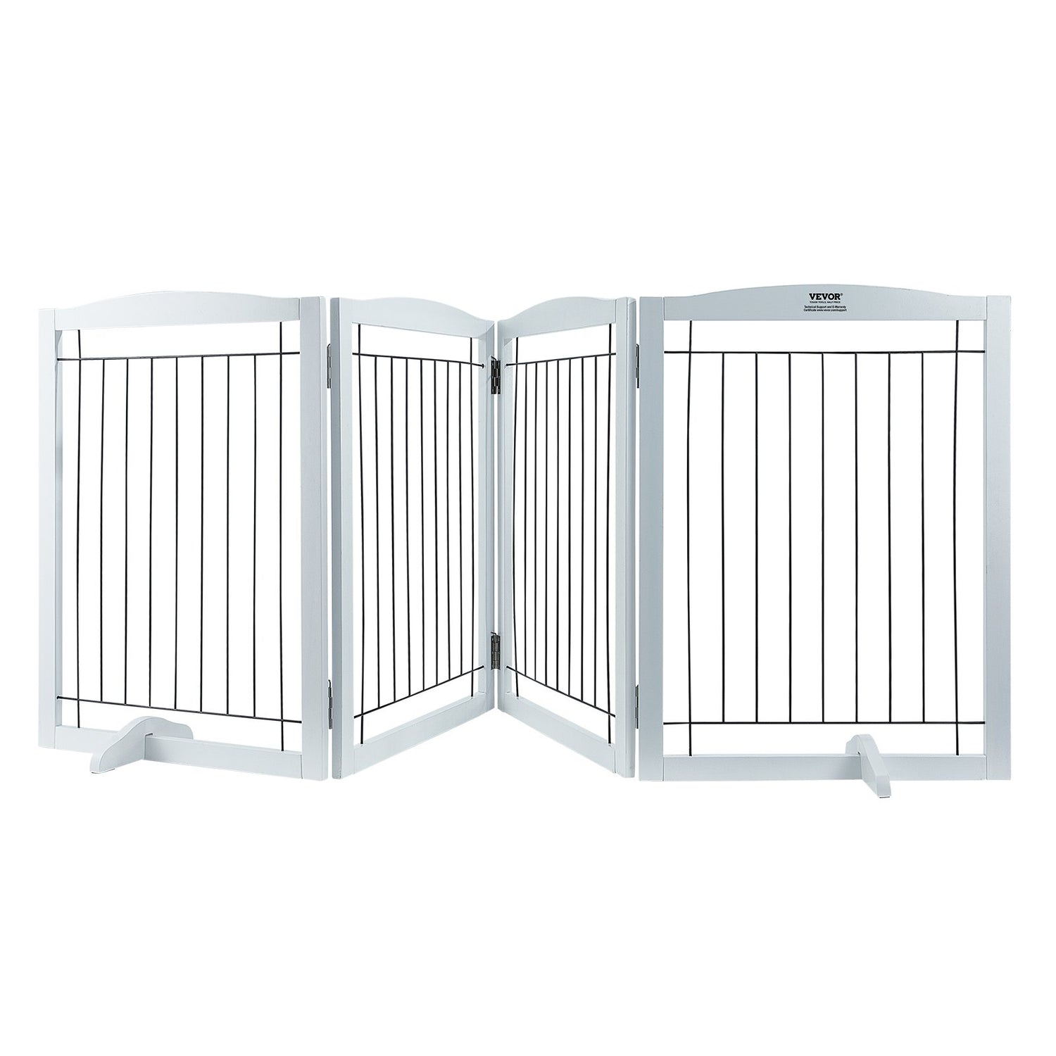 VEVOR Free Standing Dog Gate, 32" H x 96.5" W Freestanding Pet Gate, 4 Panels Foldable Dog Gate for Wide and Narrow Passageways, Expandable Dog Barrier with Silent Foot Support for Indoor, White