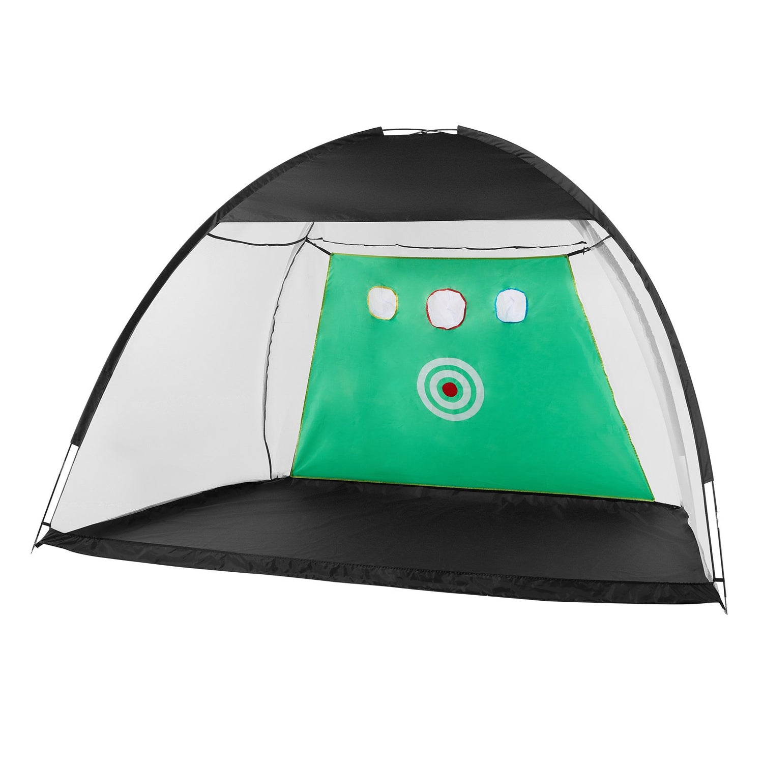 In addition to a large hitting area, this golf practice net features three additional target areas, perfect for practicing swings, chips, and shots. The protective netting on the sides and top prevents balls from flying out forcefully, while the bottom barrier reduces ball bounce-outs, making it suitable for all golf enthusiasts.