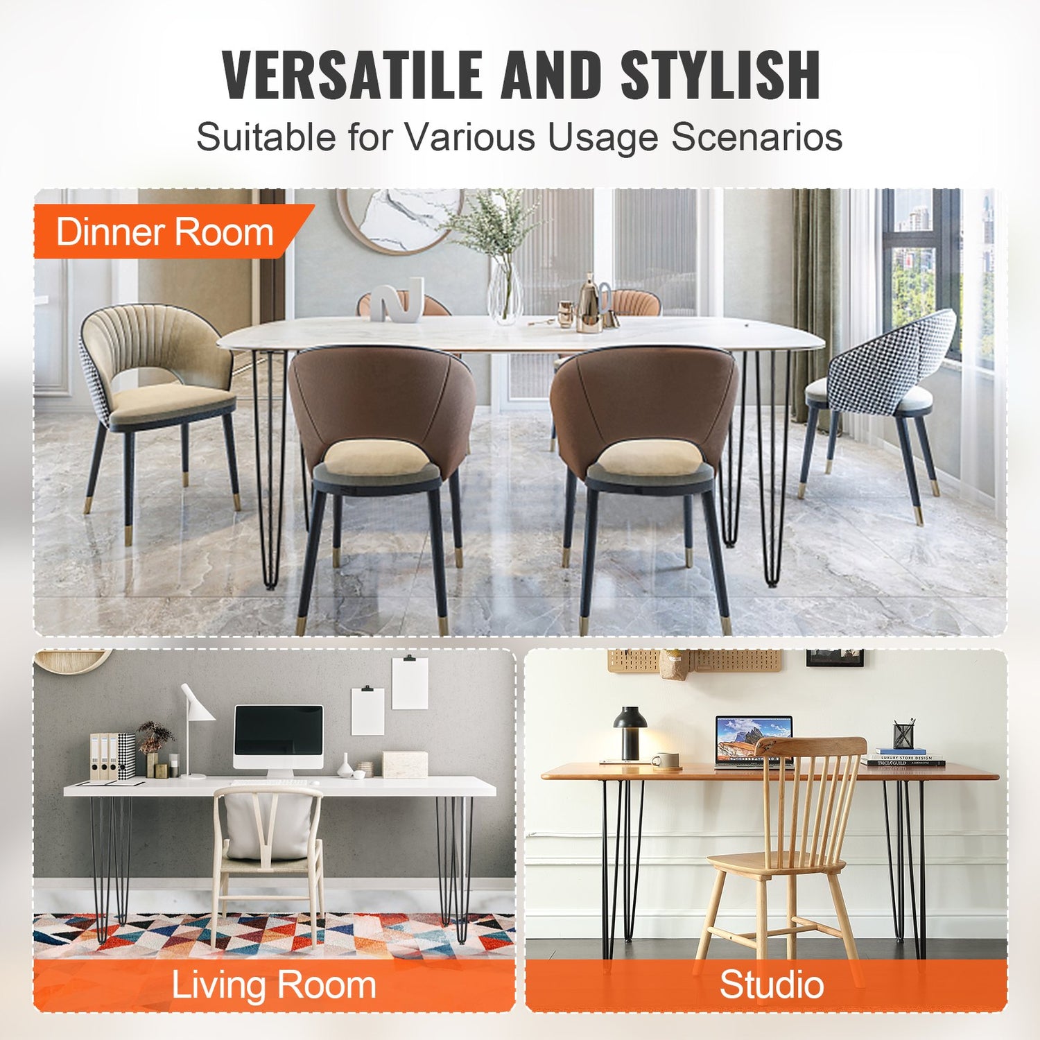 VEVOR Hairpin Table Legs 0.7M, Set of 4 Desk Legs 408.2KG Load Capacity, Hairpin Desk Legs 3 Rods for Desk Chairs Bench Dining End Table, Solid Carbon Steel Heavy Duty Furniture Legs Black