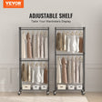 VEVOR Heavy Duty Clothes Rack, Double Hanging Rods Clothing Garment Rack with Bottom and Top Storage Tier, Rolling Clothing Rack for Hanging Clothes, Thicken Steel Tube Hold Up to 136 KG