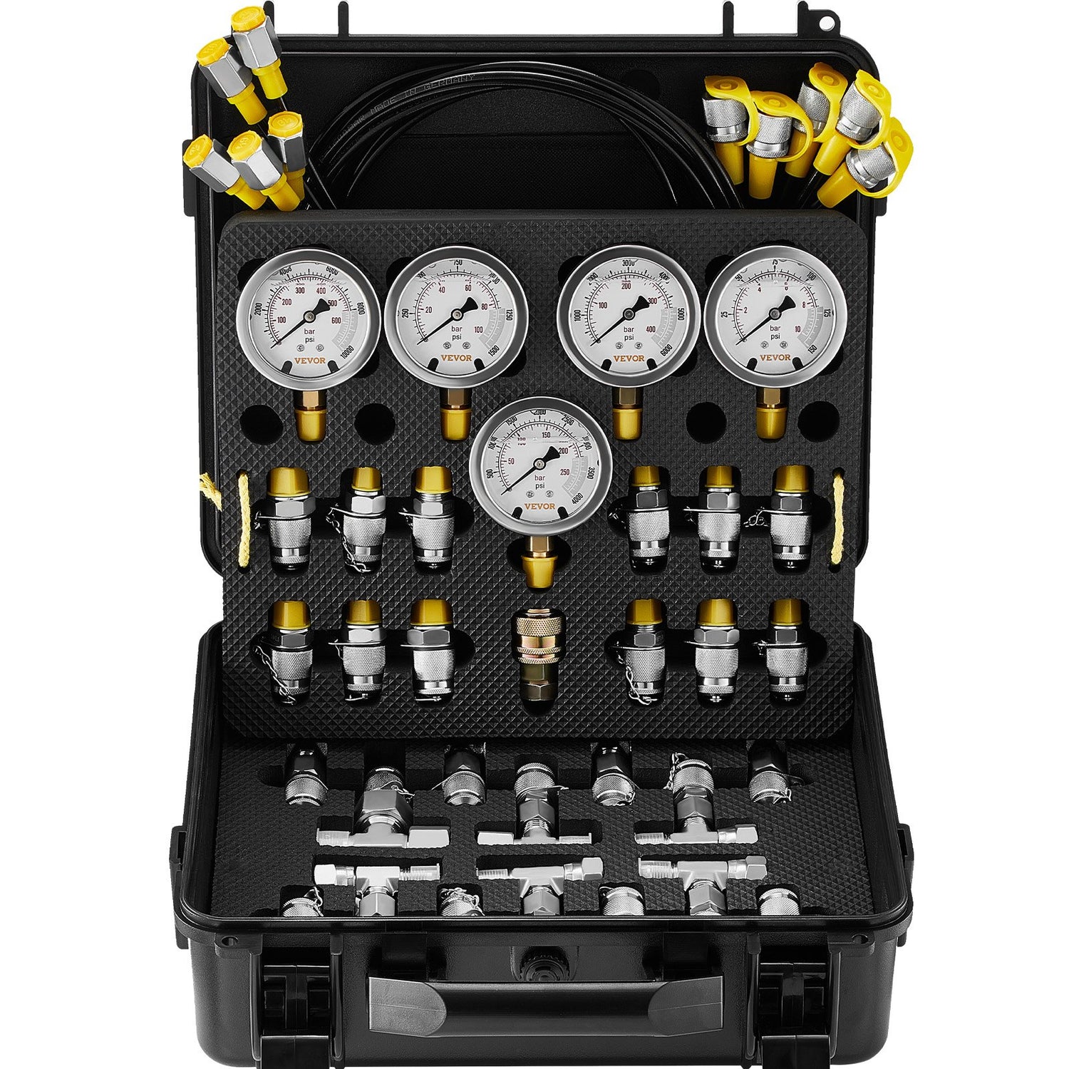 VEVOR Hydraulic Pressure Test Kit, 10/100/250/400/600bar, 5 Gauges 13 Couplings 14 Tee Connectors 5 Test Hoses, Excavator Hydraulic Test Gauge Set with Carrying Case for Excavator Tractors Machinery is backordered and will ship as soon as it is back in stock.