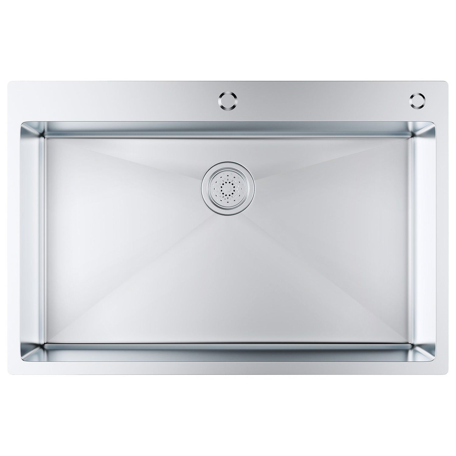 Exterior Dimensions: 33" x 22". Internal Dimensions: 31" x 18". Bowl Depth: 9". This stainless steel drop-in sink is quite deep and not only fits those big pots/pans/cookie sheets, it hides the dirty dishes waiting to go into the dishwasher from view.