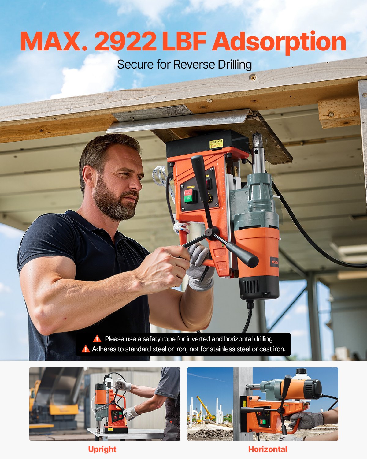 VEVOR Magnetic Drill, 1550W 1.57" Boring Diameter, 2922lbf/13000N Portable Electric Mag Drill Press with Variable Speed, 500 RPM Drilling Machine for any Surface Home Improvement Industry Railway