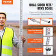 Features dual-sided markings, with front markings in Feet/8ths and back markings in feet/inches (The back measures height from top to bottom. Flip the ruler before use), equipped with weather-resistant, corrosion-resistant scales and red indicators for maximum visibility, providing clear and precise measurements.
