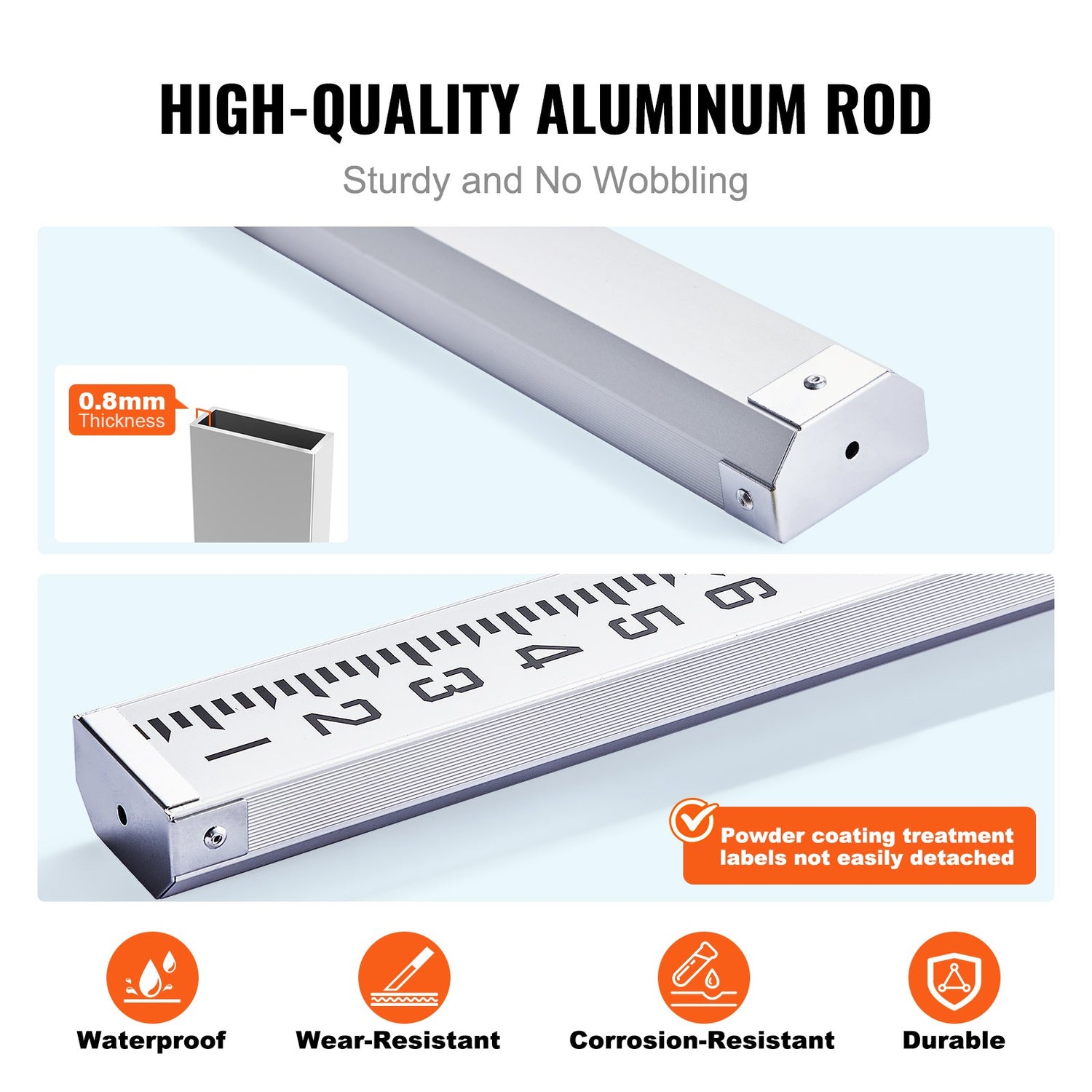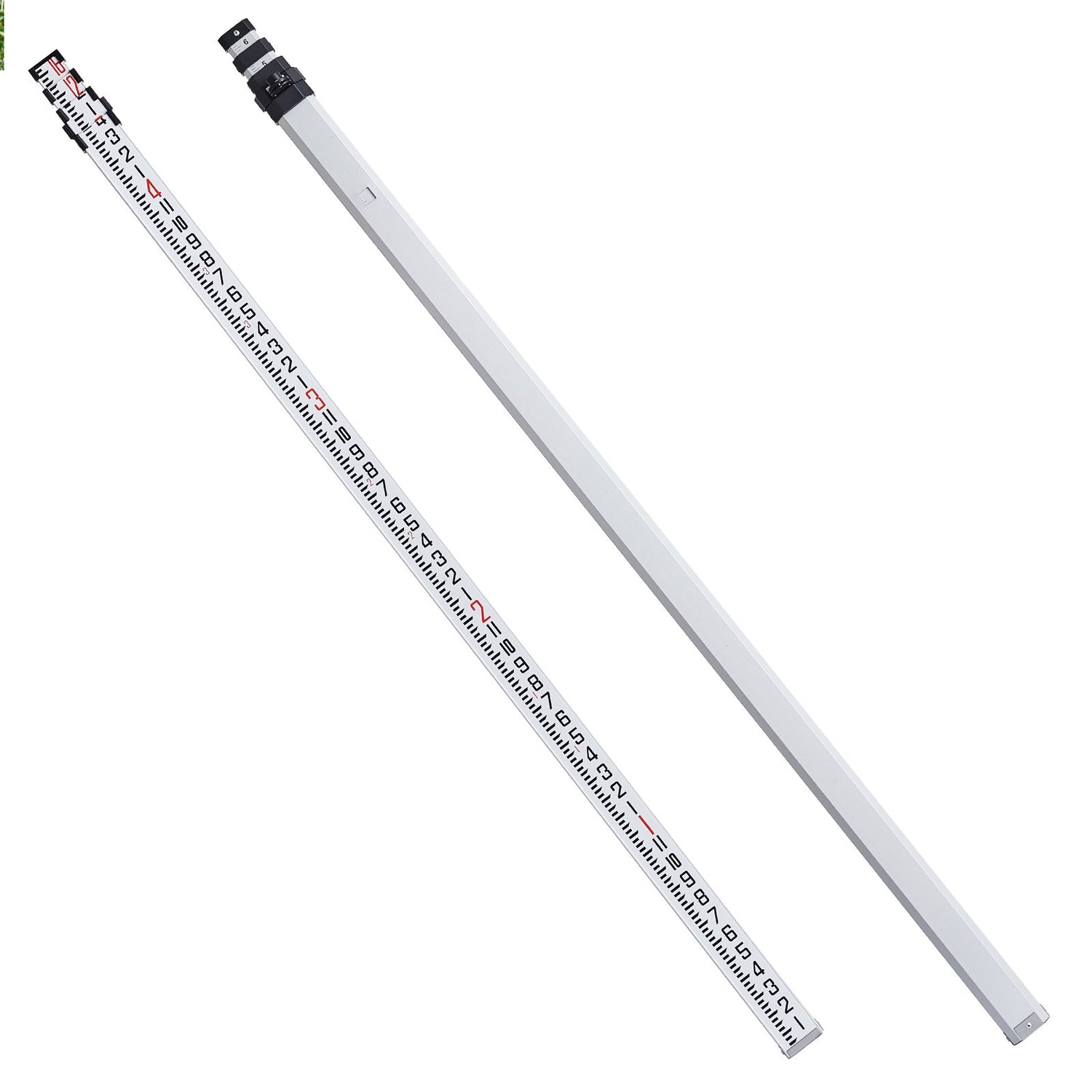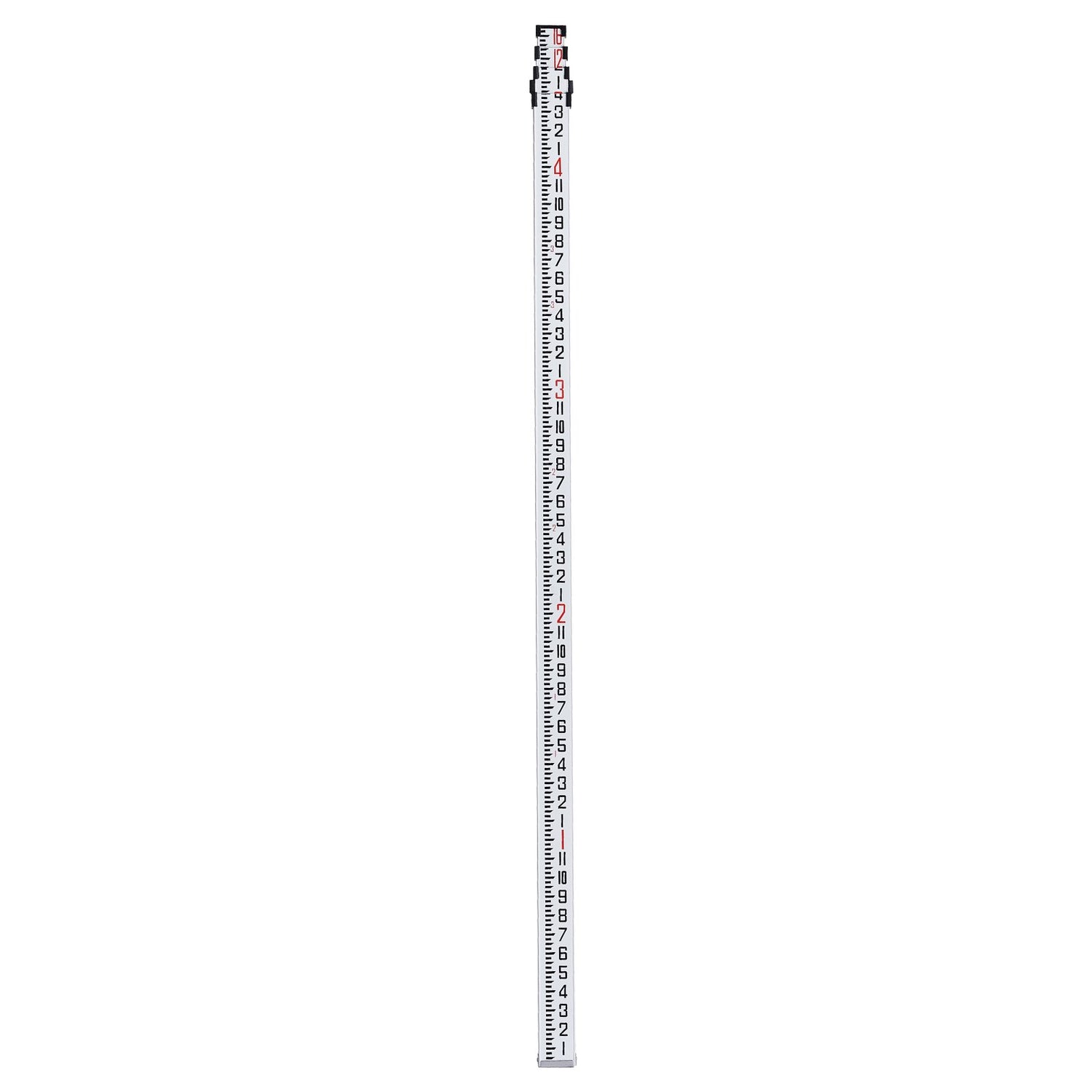This leveling rod is equipped with 4 adjustable telescopic sections, extending up to 16ft/4.88m. Designed in a rectangular shape, it ensures ease of operation and alignment with surfaces, collapsing for compact storage when not in use.