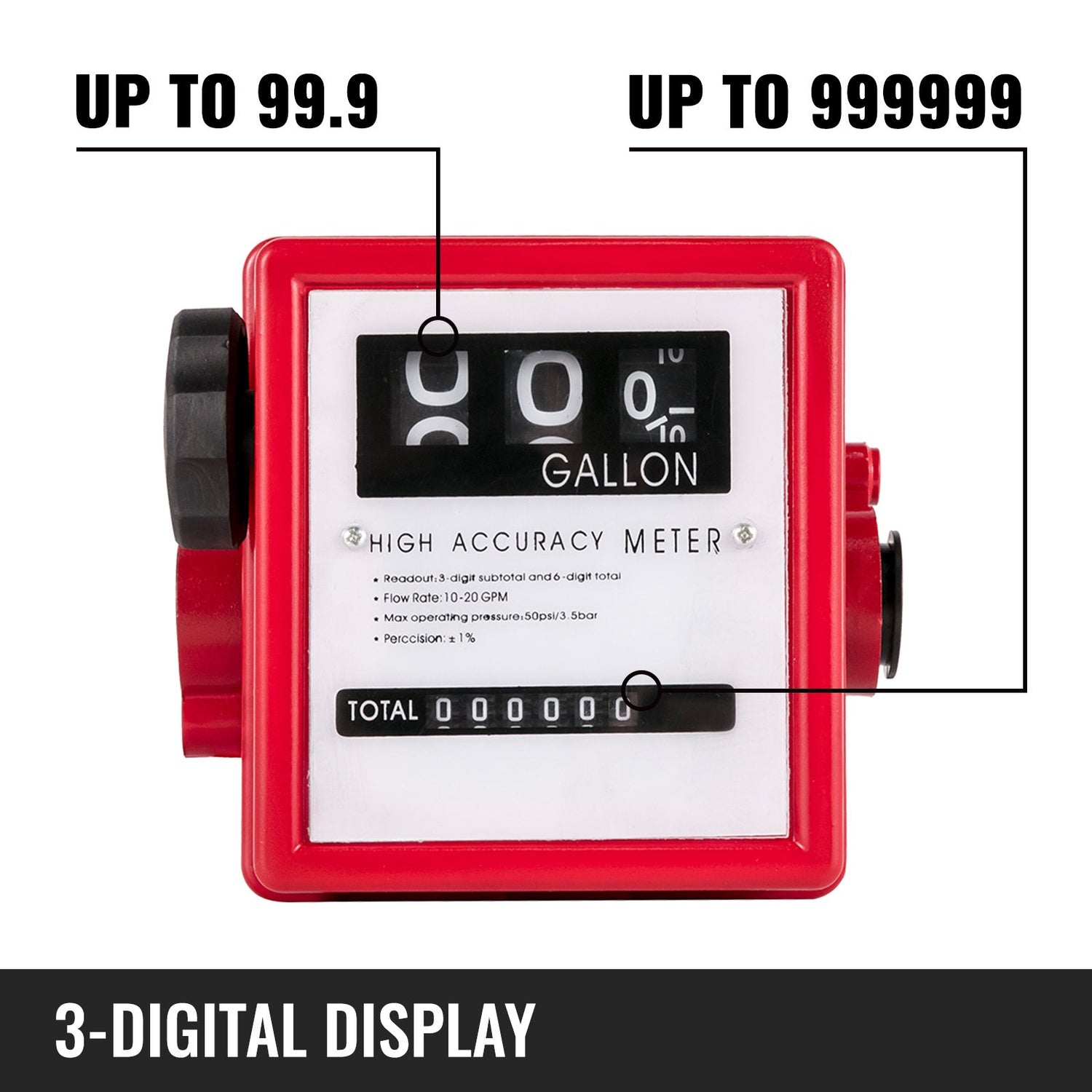 EASY TO READ - Our fuel flow meter has a large-screen display with 3-digit subtotal and 6-digit totals. It is easy to read and install proofreading.