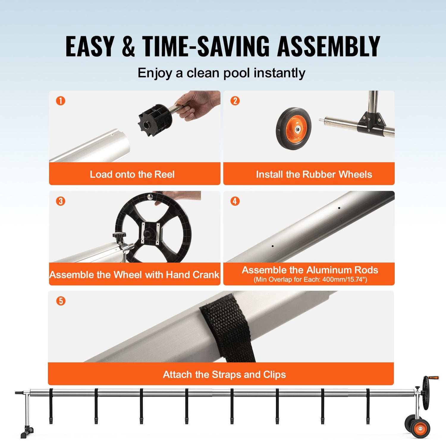 With a wide adjustment range from 2.65-4.2 m/8.69-13.77 ft, our solar pool cover reel perfectly fits for inground swimming pools of various sizes. Whether you have a standard or custom-sized pool, our reel eliminates sizing concerns and offers a hassle-free solution.