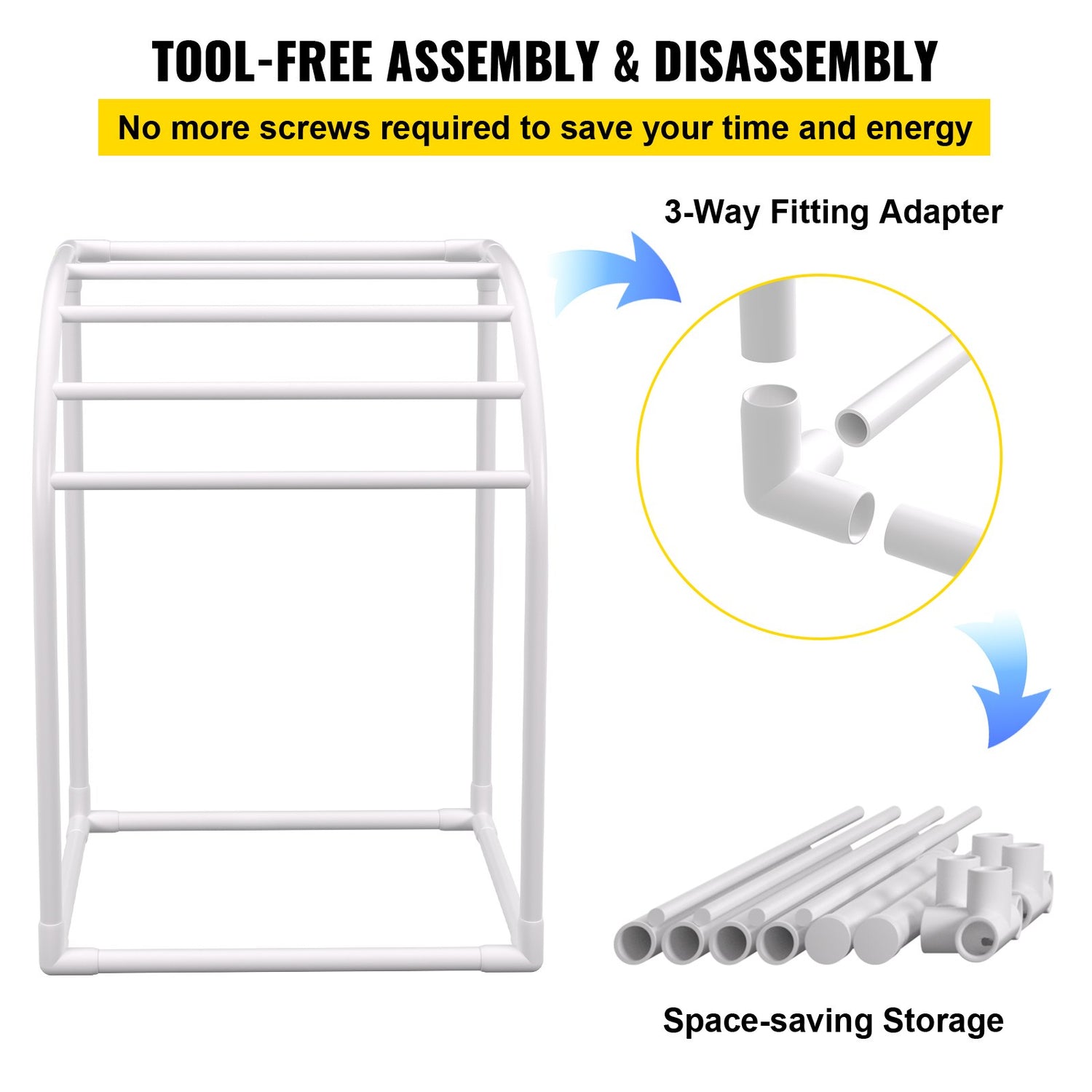 VEVOR Pool Towel Rack, 5 Bar, Milky, Freestanding Outdoor PVC Curved Poolside Storage Organizer, Include 8 Towel Clips, Mesh Bag, Hook, Also Stores Floats and Paddles, for Beach, Swimming Pool, Home