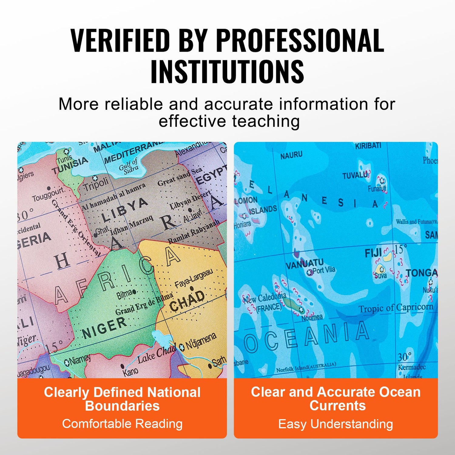 Our 8-inch/203.2 mm globe provides a high-definition display of the world's map and boundaries, making it easy to see and understand. It visually presents global countries, capitals, ocean currents, lakes, and latitude and longitude lines, fulfilling all your geography learning needs. Experience comprehensive and engaging learning for students of all ages!