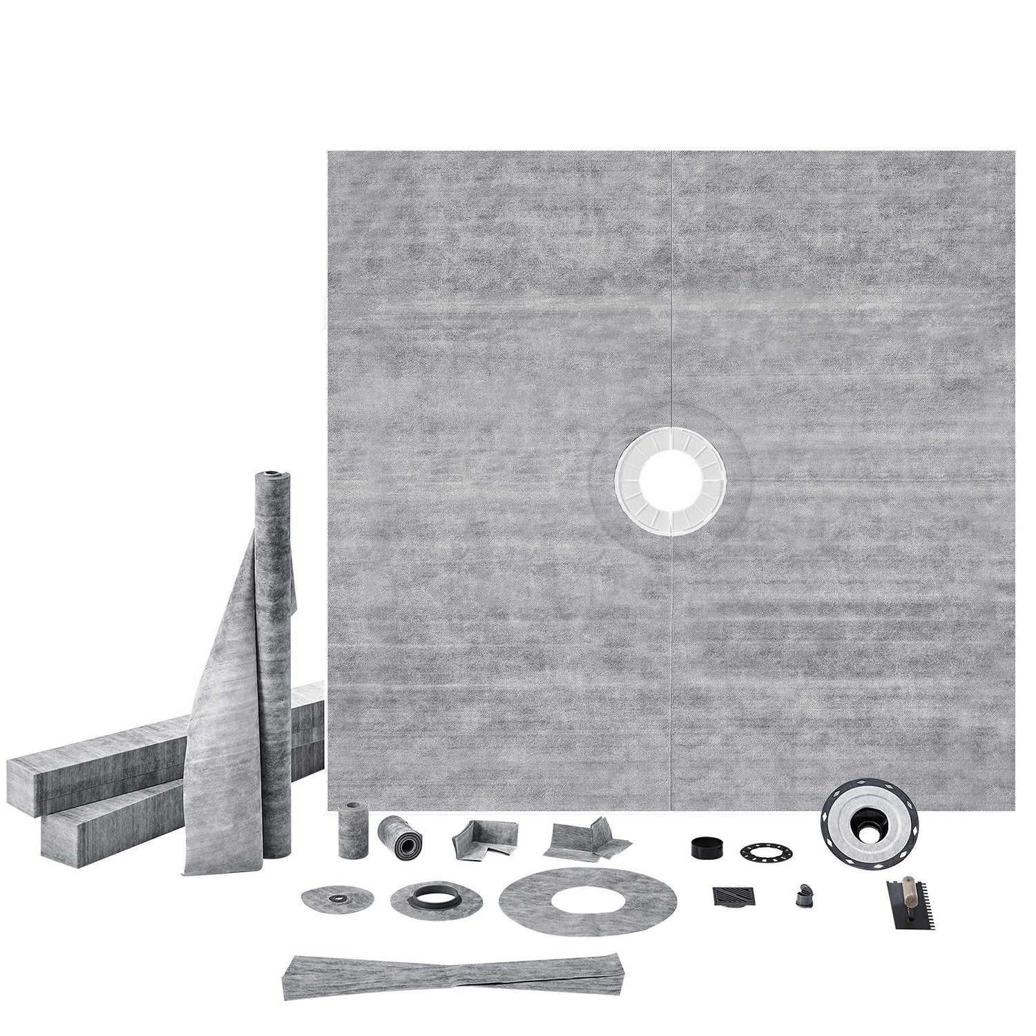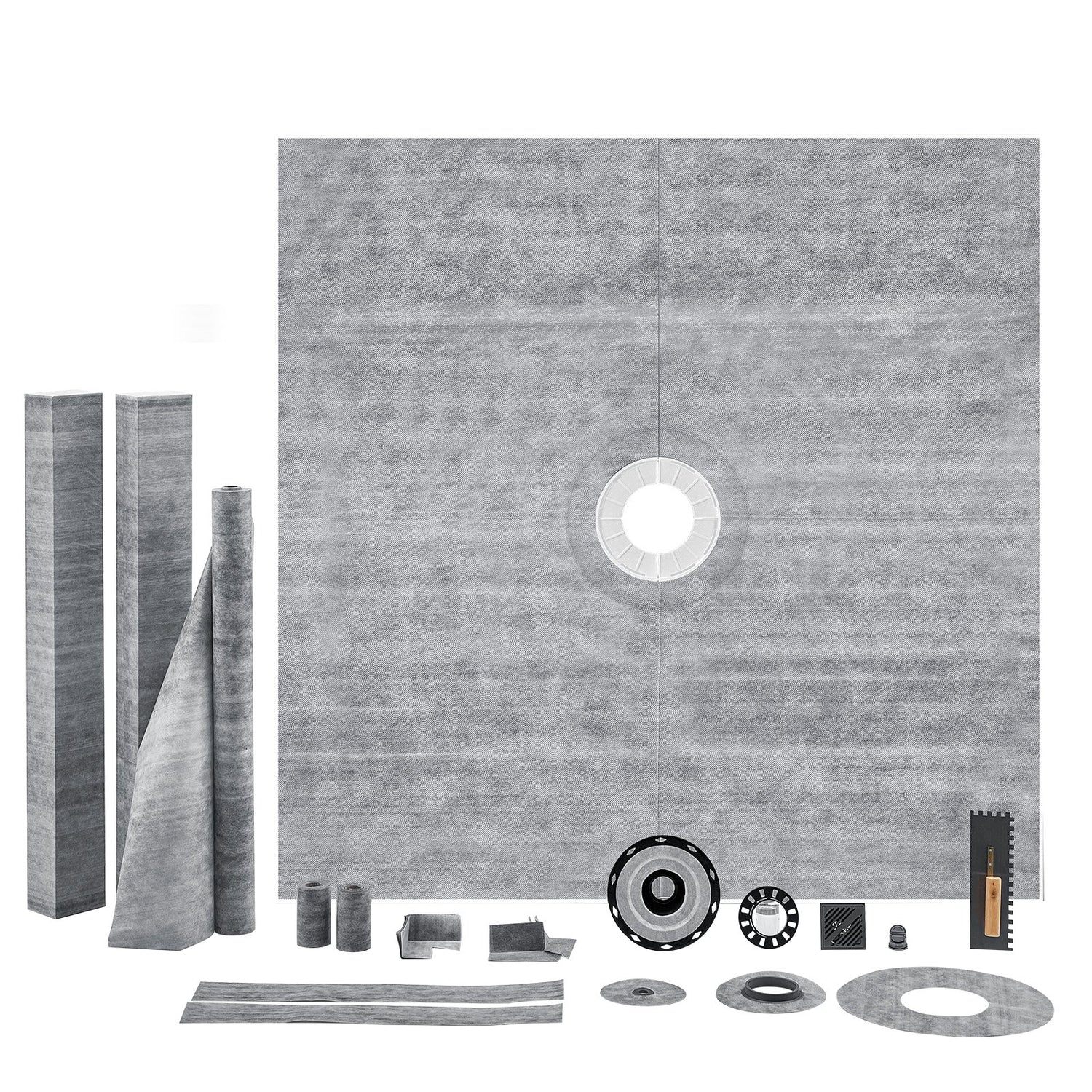 VEVOR Shower Curb Kit, 1828x1828mm, 72"x72" Shower Pan Kit with 50.8mm ABS Central Flange, 101.6mm Stainless Steel Grate, Waterproof Shower Curb & Membrane & Strip, Shower Pan Slope Sticks Fit for Bathroom