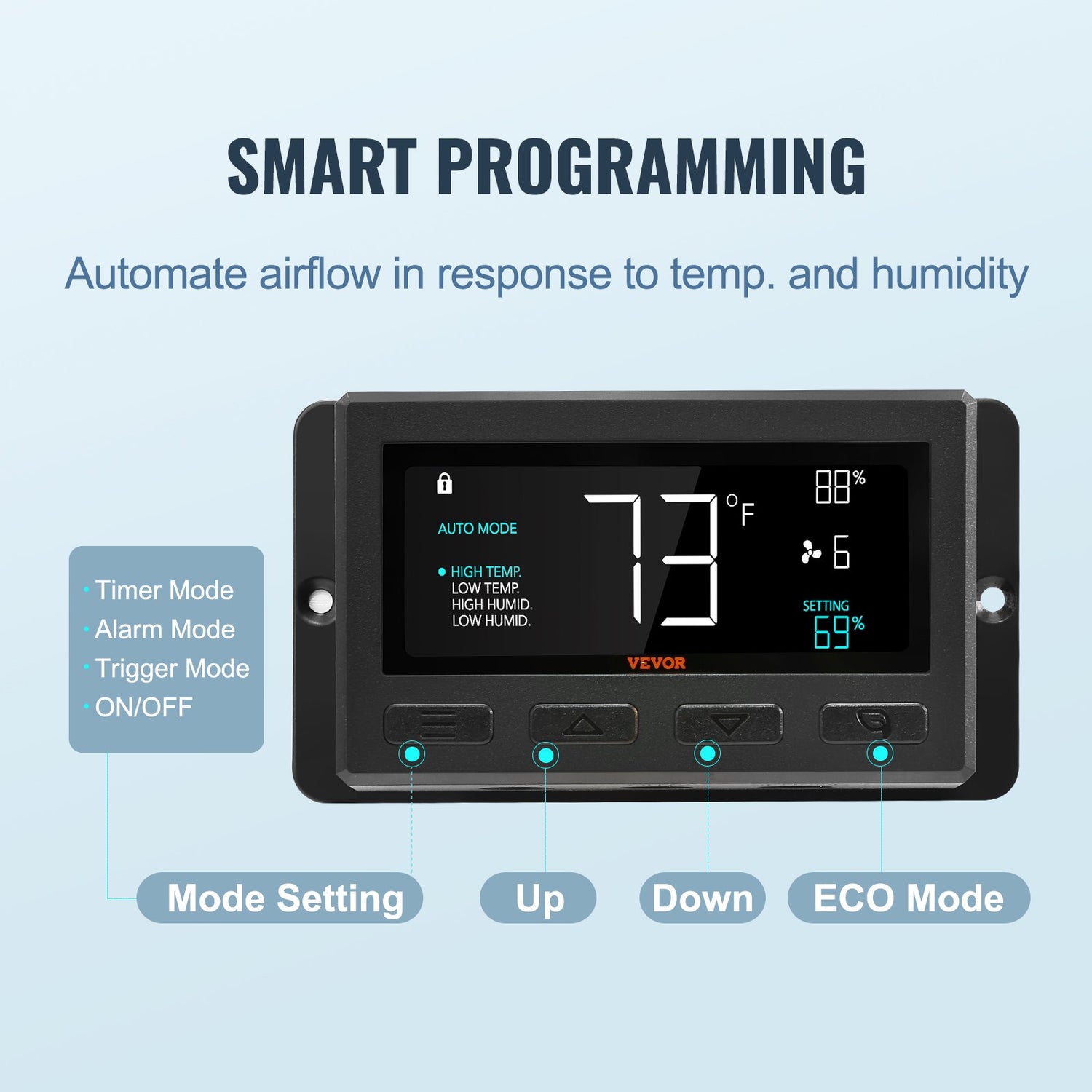 VEVOR Shutter Exhaust Fan, 406 mm /16inch with Temperature Humidity Controller, EC-motor, 1747 CFM, Variable Speed Adjustable Wall Mount Attic Fan, Ventilation and Cooling for Greenhouses, Garages, Sheds is backordered and will ship as soon as it is back in stock.