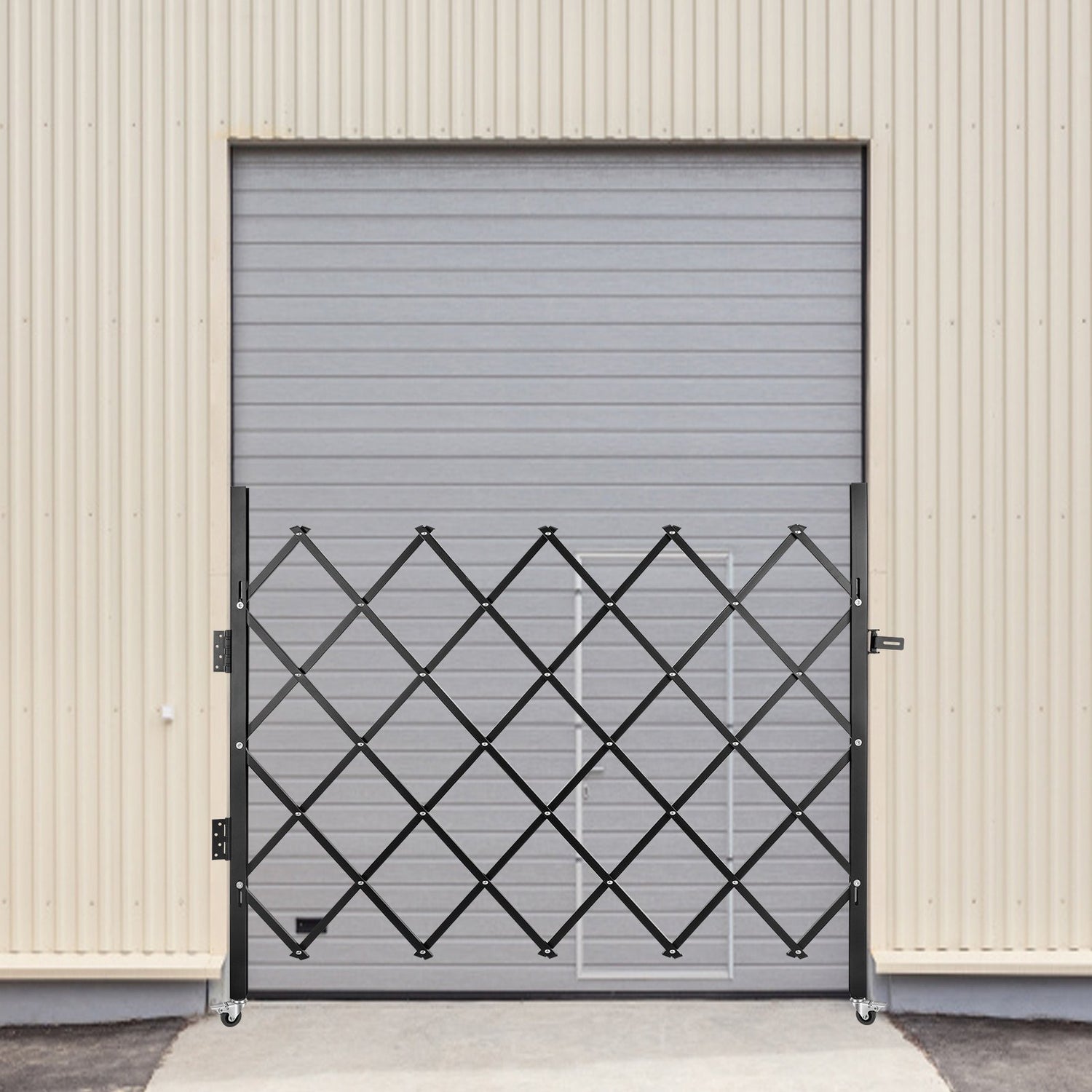 The single folding gate has a retractable door width structure. Retracted/Collapsed size: 48"H x 6.3"W. Expanded size: 48"H x 66"W. The standard size is suitable for use as safety doors, barricade gates seeking protection, and defend.