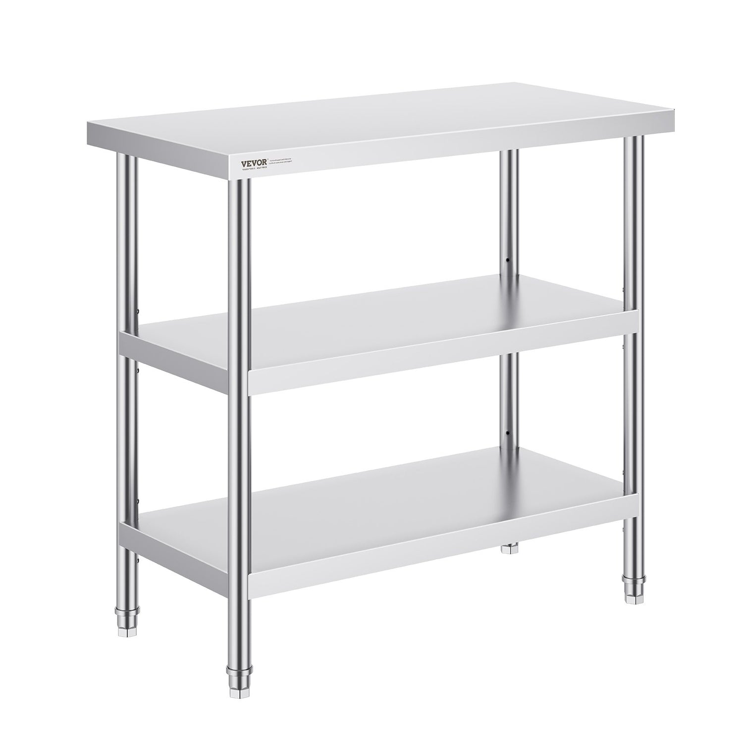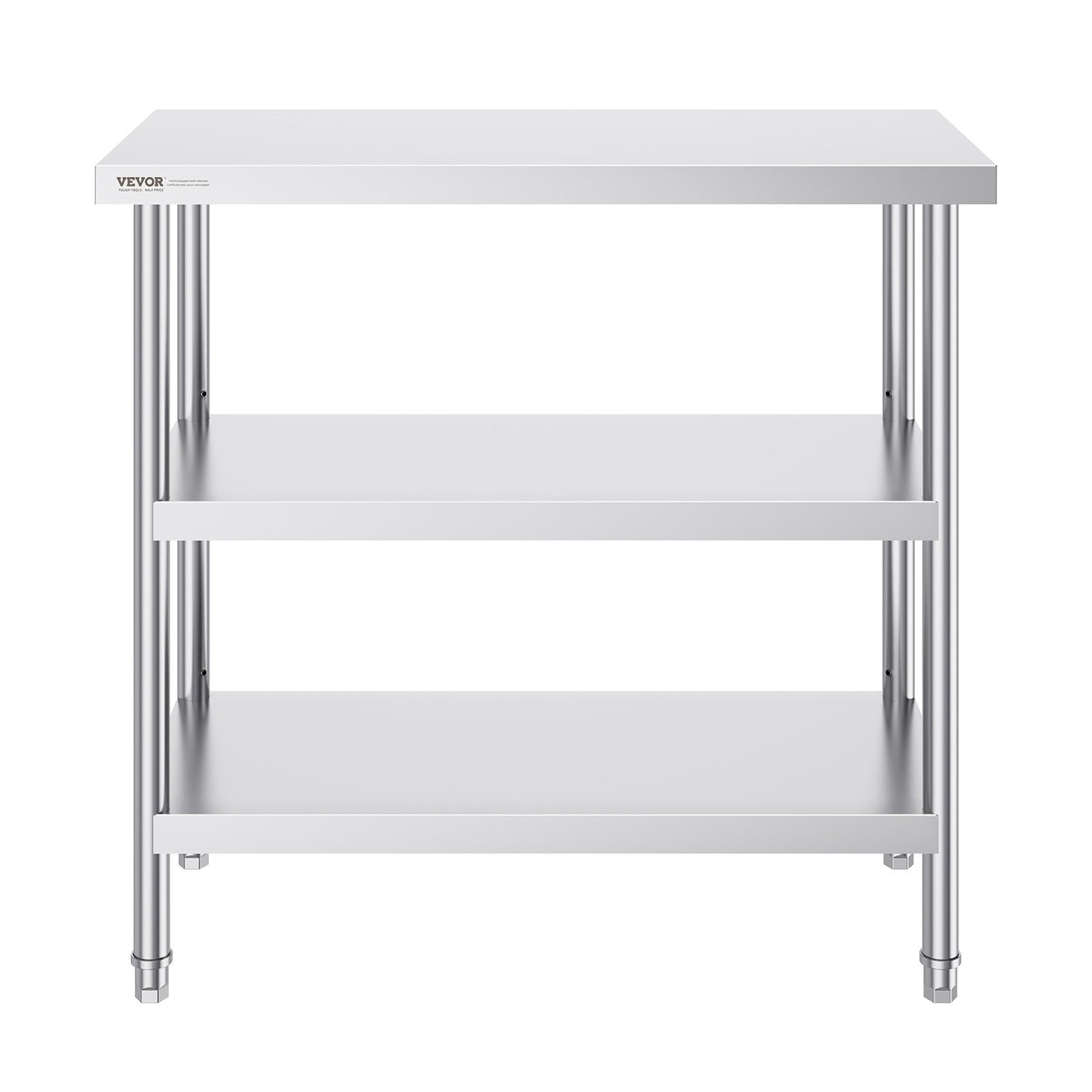 VEVOR Stainless Steel Food Prep Table, 18 x 36 x 34 Inch Commercial Kitchen Worktable, with 2 Adjustable Undershelf, Heavy Duty Prep Table Metal Work Table for BBQ, Kitchen, Home, and Garage is backordered and will ship as soon as it is back in stock.