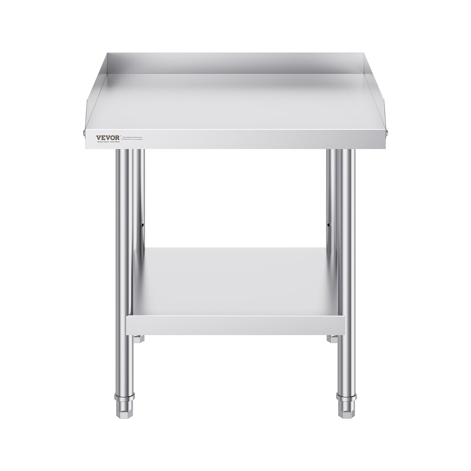 VEVOR Stainless Steel Work Table, 24 x 24 x 26 Inch Commercial Food Prep Worktable, 3-Sided Backsplash Heavy Duty Prep Worktable, Metal Work Table with Adjustable Height for Restaurant Home Hotel is backordered and will ship as soon as it is back in stock.