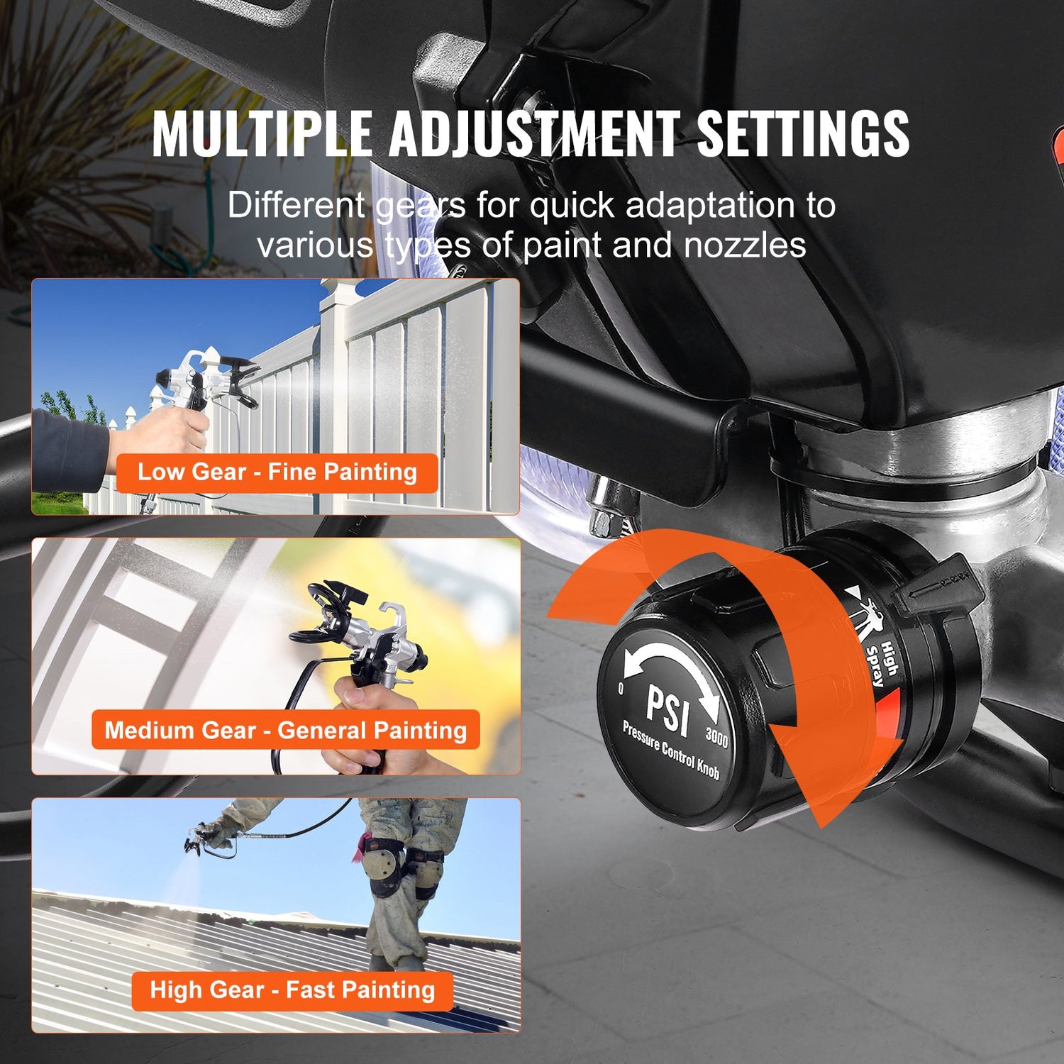 Our paint sprayer features an adjustable motor, a professional rubber hose, and a full-metal frame, known for high performance, high strength, wear resistance, and heat resistance. It effortlessly handles challenges in various painting tasks.