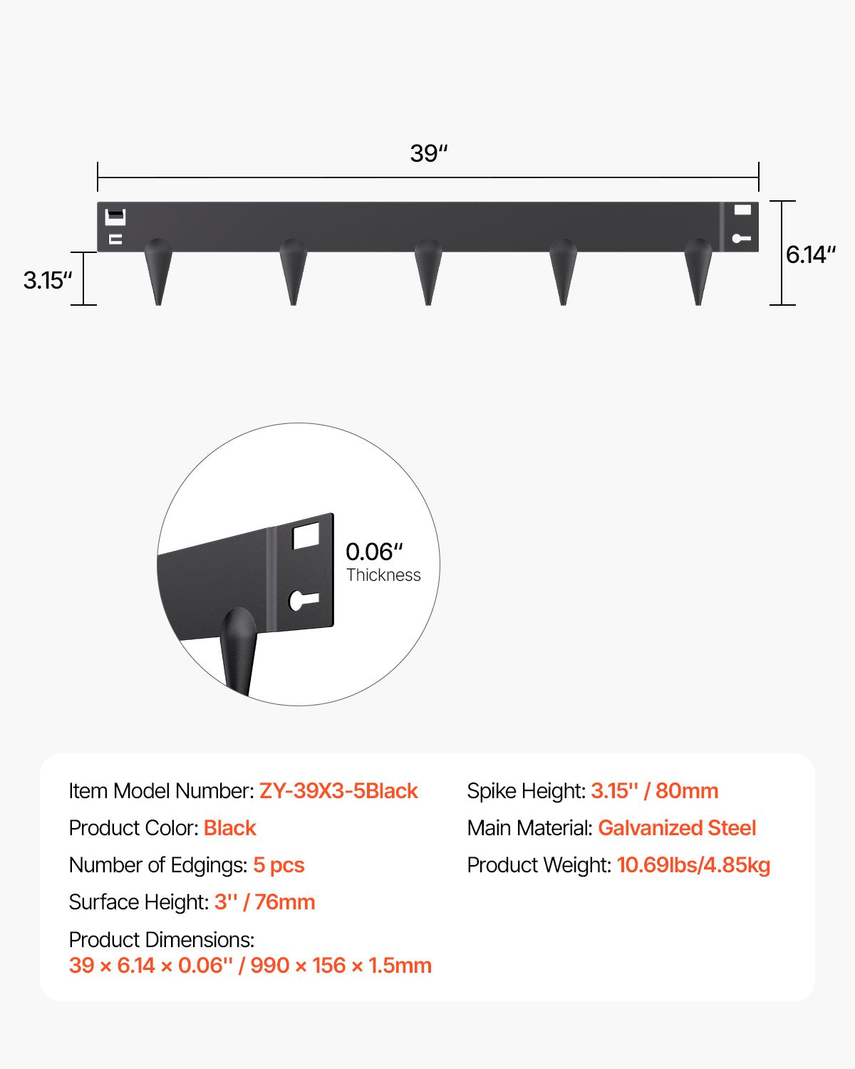 VEVOR Steel Landscape Edging 5 Packs 39 x 3in Rust-Resistant Pathway Divider