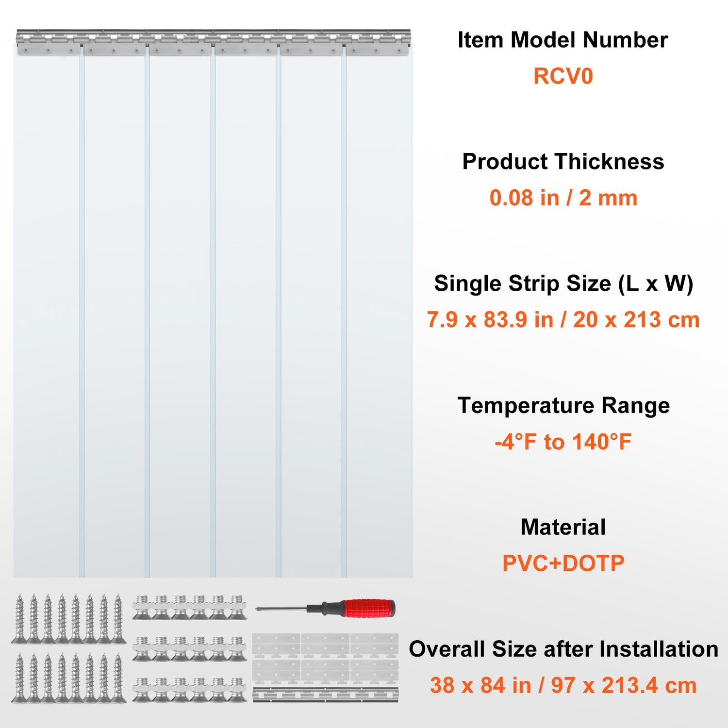 FAQs about VEVOR Strip Curtain, 213.4 cm Height x 97 cm Width, 2 mm Thickness, 6PCS Clear PVC Strip Door Curtain