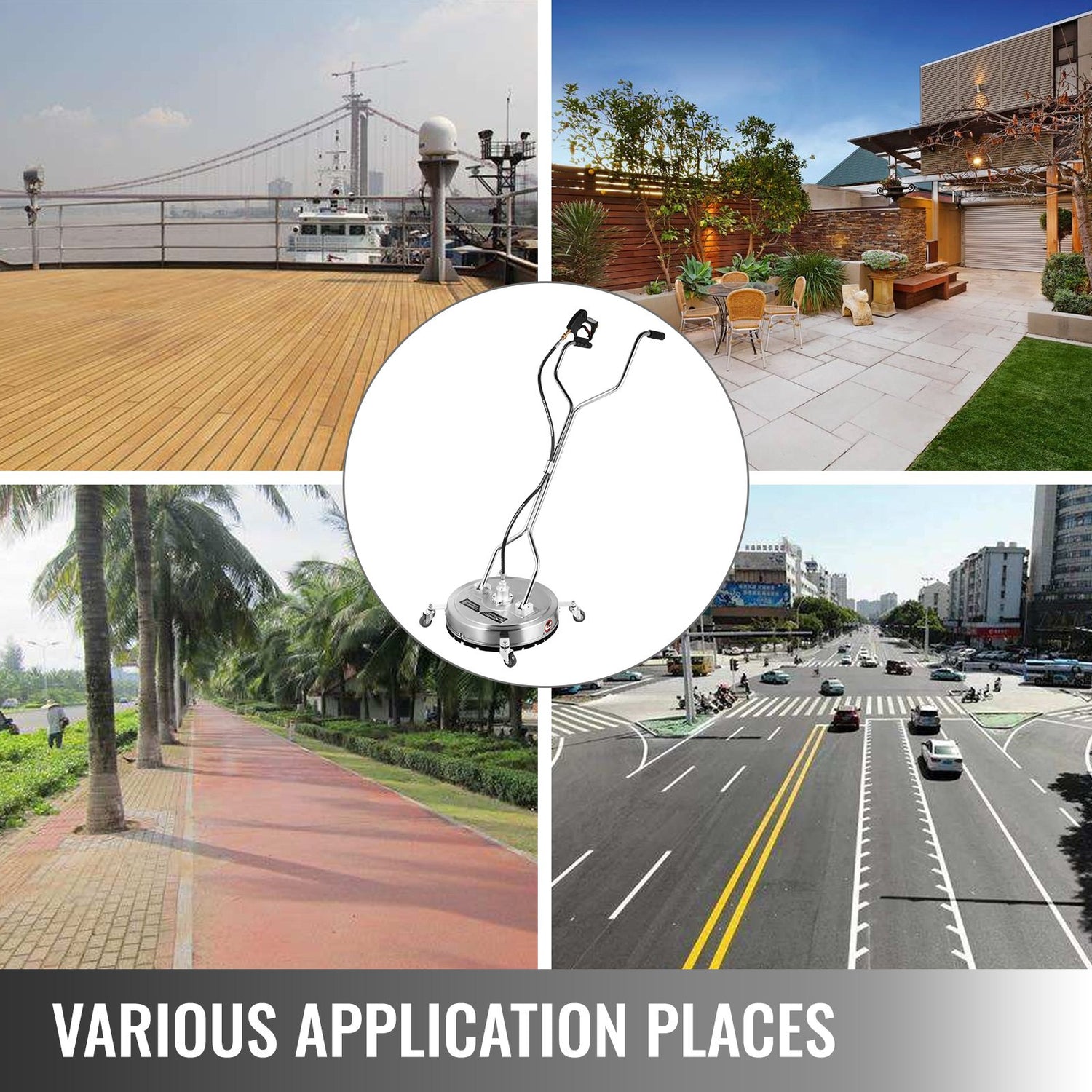 WIDE APPLICATION- This surface cleaner for gas pressure washers can be used on decks, patios, sidewalks, driveways, pool decks, parking lots, and many other horizontal flat surfaces. Help you get a time-saving cleaning.