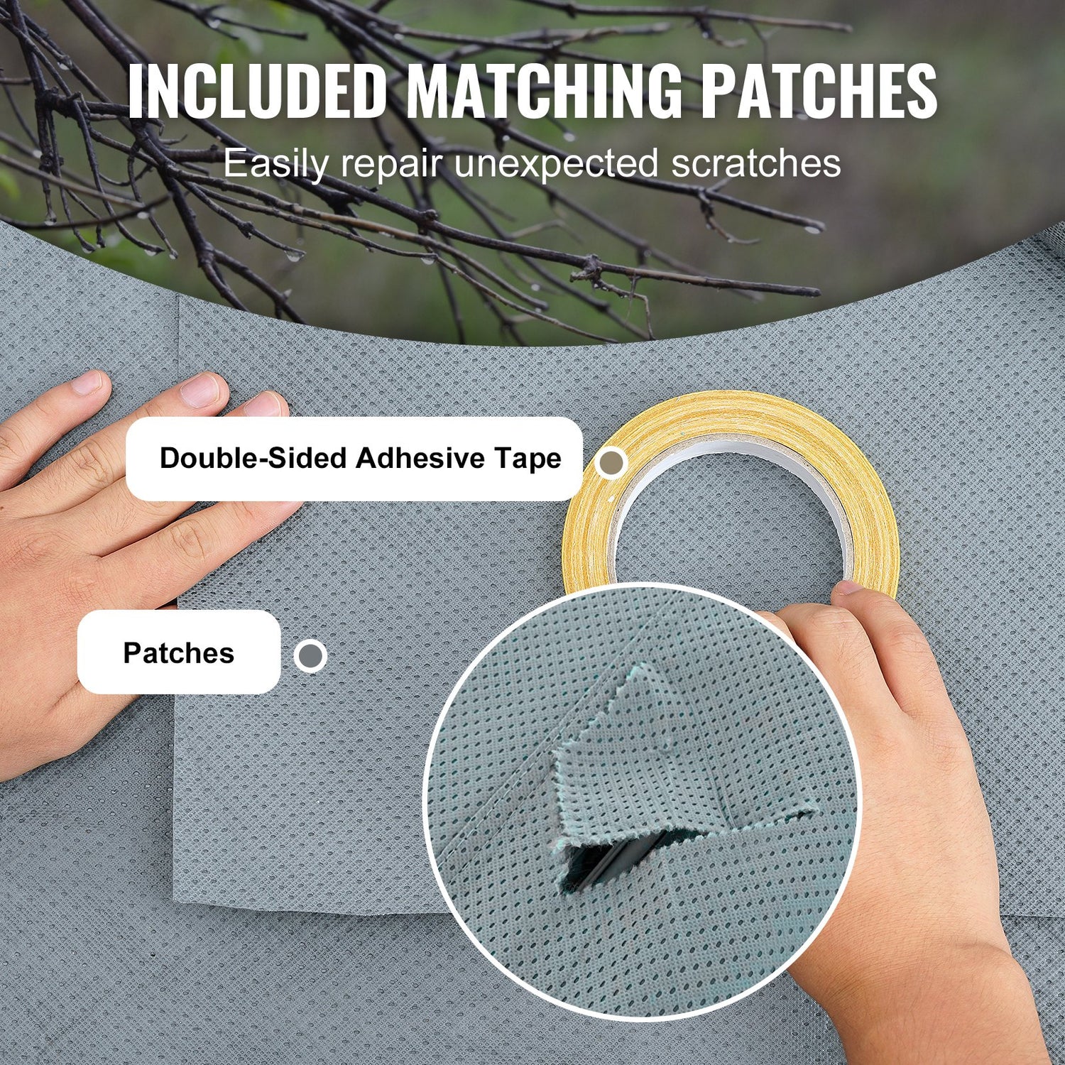 We provide 3 large-size RV cover patches made from the same high-quality material; no worries when encountering situations where the camper cover gets cut by branches or sharp edges. Simply use the double-sided adhesive, and your RV cover will have extended longevity, protecting your investment for years to come.