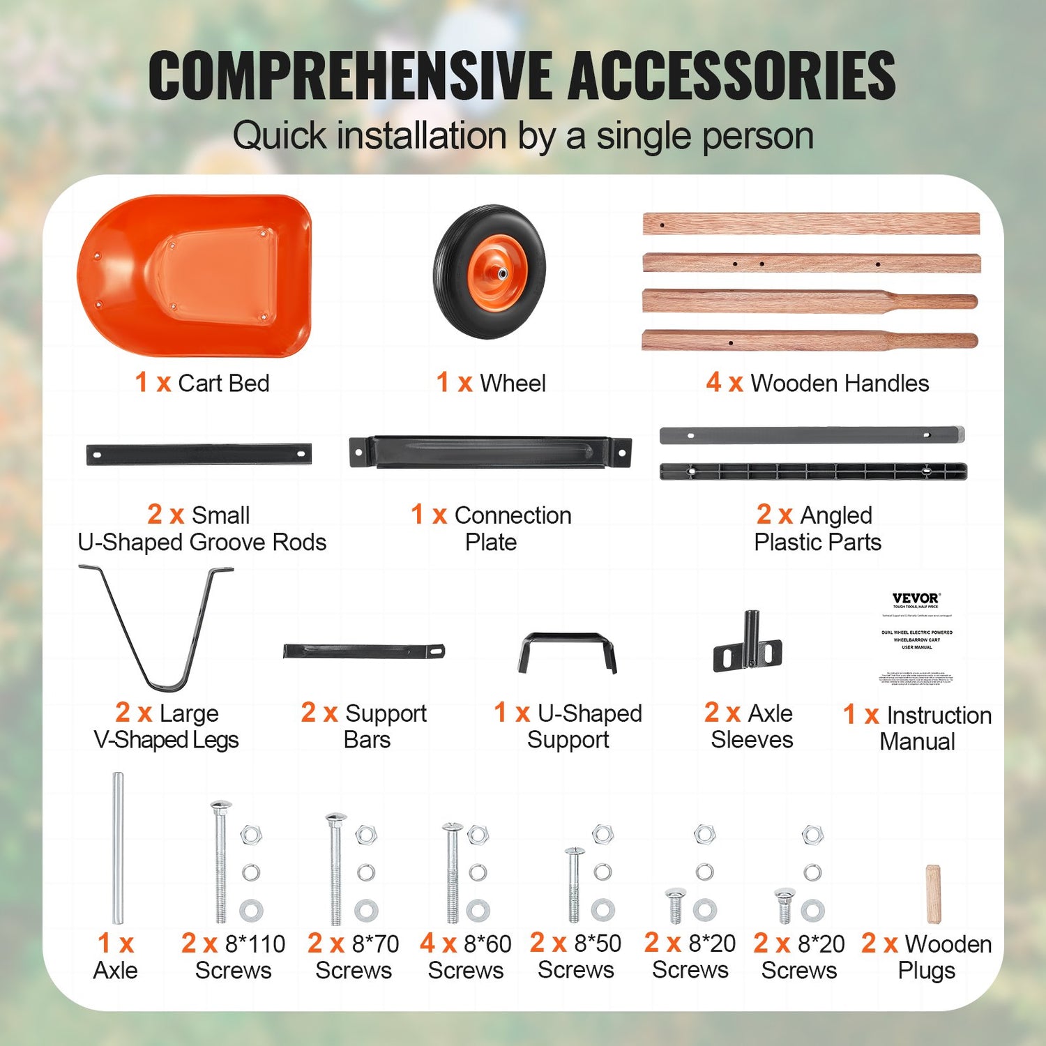 VEVOR Wheelbarrow Cart One Wheel Garden Dump Cart 330 lbs Yard Utility Cart