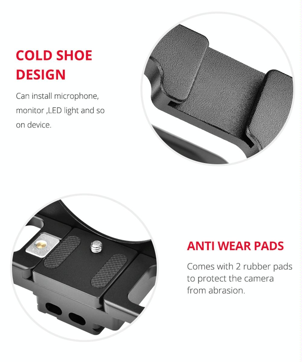 • 1/4 and 3/8 threaded holes for attaching accessories