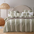 The Vintage Design Homewares Tempo Green Cotton Jacquard Quilt Cover Set features a yarn dyed contemporary stripe design woven from cotton. The jacquard cotton weave gives not only a textural look, but blends soft comfort and strength that will enhance your Sleeping Space. The bold linear stripes in fresh green, olive, and taupe tones strikes the perfect balance between contemporary and cosy. This set offers a textured finish that feels luxurious to the touch, ideal for creating a stylish, inviting retreat with personality and charm.
