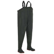 Stay dry while fishing with our chest wader pants. This exceptional coated polyester fabric is cozy and pliable inside, and simultaneously robust outside. Thanks to its stitched and sealed seams, as well as the attached boots, our wading pants are 100% waterproof. Additionally, the shoulder straps enable you to make the fishing pant fit perfectly without a hitch. Note: For perfect fit, please check size chart carefully before buying. If your Feet are Wide or you need to wear Thick Socks, please Choose ONE SIZE LARGER than usual.