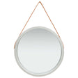 This retro mirror piece is designed to make a strong visual statement in a bedroom, or living space. This on-trend hanging mirror design offers a sleek take on vintage decor for modern interiors. The large round mirror is framed by durable natrual paulownia wood, suspended from peg by a smooth soft-touch faux leather belt. The strap allows adjusting the mirror in any height you need, adding more flexibility of this decoration.