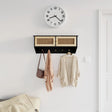 Maintain your hallway, living room, or other places in proper order with this Scandinavian wall-mounted coat rack! 2-in-1 design: The coat hanger features 2 compartments on top, which provides additional storage space for daily essentials. Additionally, it is equipped with 5 hooks to store clothes, bags, keys, umbrellas, etc.Durable material: The engineered wood is of exceptional quality with smooth surface and also features strength, stability and resistance to moisture.Sturdy top: The peg board has a sturdy top, which is perfect for placing potted plants, framed photos, and other decorative items.Practical door: The peg features 2 doors, which can protect your things from dust and dirt. Also, the nature rattan weaving design in the door adds extra beauty. Note:Screw(s) and plug(s) for inside the wall are not included. Seek and use screw(s) and plug(s) suitable for your walls. If you are uncertain, seek professional advice. Read and follow each step of the instruction carefully.Each product comes with an assembly manual in the box for easy assembly.