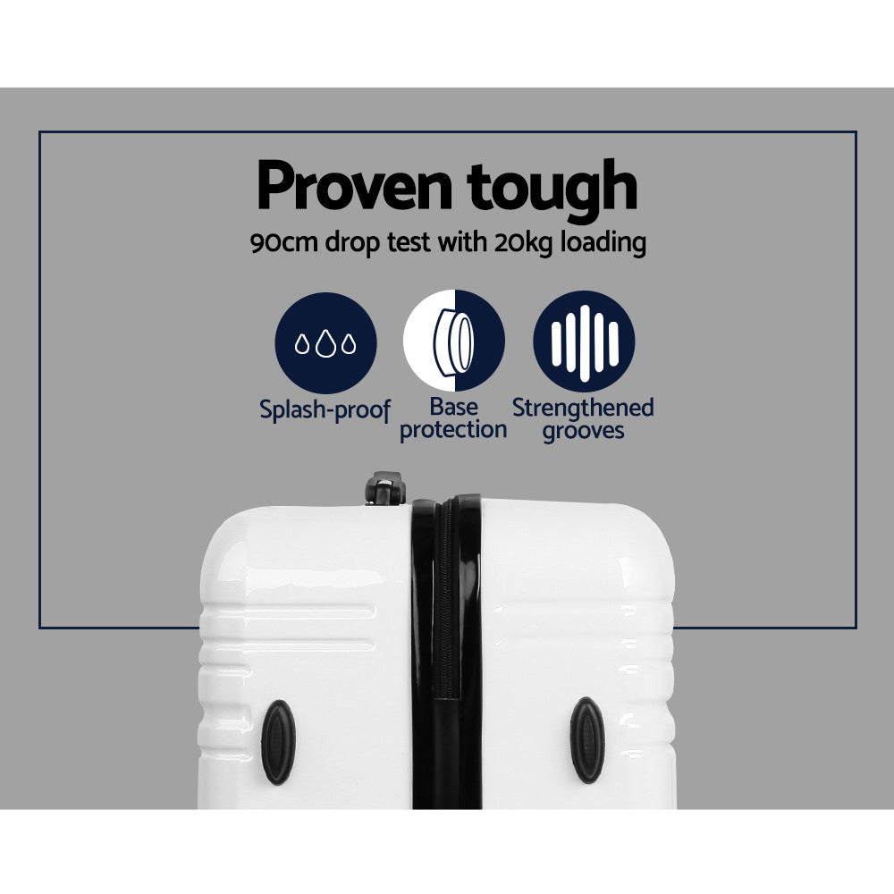 Wanderlite Ultra-Light 3-Piece Hard Shell Travel Luggage Set - Elegant Black & White Style