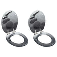 This toilet seat, with its spectacular look, will be a truly eye-catcher in any bathroom. It will not only add a touch of intriguing style to your bathroom, but also is considerably durable. Its MDF lid and seat are exceedingly sturdy and hard-wearing. The hinges are made of extra strong chrome-zinc alloy. Additionally, the toilet seat features soft closing function, enabling it to close and open gently and quietly both to prevent noise being made, as well as give you a long lasting lifetime. This toilet seat fits all common toilet bowls as the hinges can be adjusted in width from 12 to 20 cm. It is also simple to install and easy to clean. Delivery includes 2 toilet seats with lids.